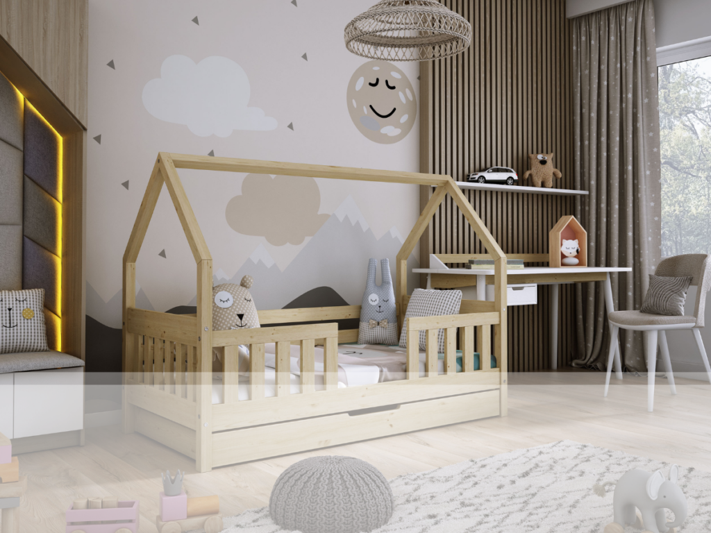 Mamy w ofercie łóżka pojedyncze, podwójne, parterowe oraz piętrowe. Spośród wielu wzorów z pewnością wybierzesz miejsce do spania zarówno dla malucha, jak i nastolatka. Jeśli chcesz spełnić marzenia dziecka o bajkowym, drewnianym łóżeczku dziecięcym, zobacz łóżka dla dzieci domki. Dysponujesz małą przestrzenią? Idealne rozwiązanie to tradycyjne łóżka piętrowe dla dzieci lub łóżko piętrowe domek, dzięki którym zaoszczędzisz przestrzeń. Dodatkowo dla młodszych doskonale sprawdzi się łóżko dziecięce, drewniane z barierką i szufladą.