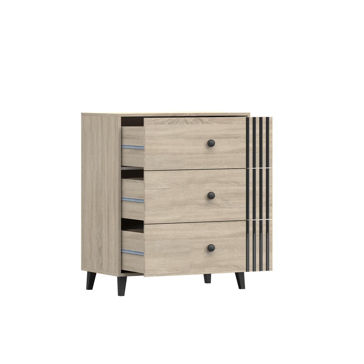 Komoda z kolekcji NEVIL odznacza się klasyczną formą, która sprawdzi się w każdym stylowym salonie, jadalni czy sypialni. Mebel jest praktyczny dzięki obecności dużej ilości schowków, które gwarantują wystarczającą ilość miejsca do zagospodarowania.
