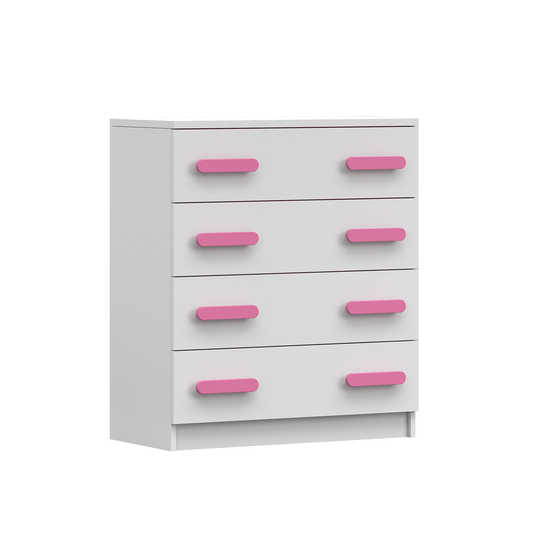 Pojemna komoda to jedna obowiązkowy element w wyposażeniu pokoju dziecka. Zmieścisz w niej większość ubrań, dzięki głębokim półkom. Komoda może być również zagospodarowana zabawkami. Charakterystyczne uchwyty to element rzucający się na pierwszy rzut oka. Kolory wyróżniają się na tle jasnych mebli. Materiały wykorzystane do stworzenia mebli są z wyselekcjonowanej, wysokiej jakości płyty laminowanej 16 mm, która gwarantuje odporność na zarysowania, uszkodzenia oraz wilgoć. Okucia łączące elementy są wysokogatunkowe, więc masz pewność, że meble będą wieloletnie. Dla zwiększenia wytrzymałości i trwałości mebla, obrzeża mebli wykończono okleiną ABS. Stwórz dla swojego dziecka doskonałą kompozycję z kolekcją NODI WHITEII!
