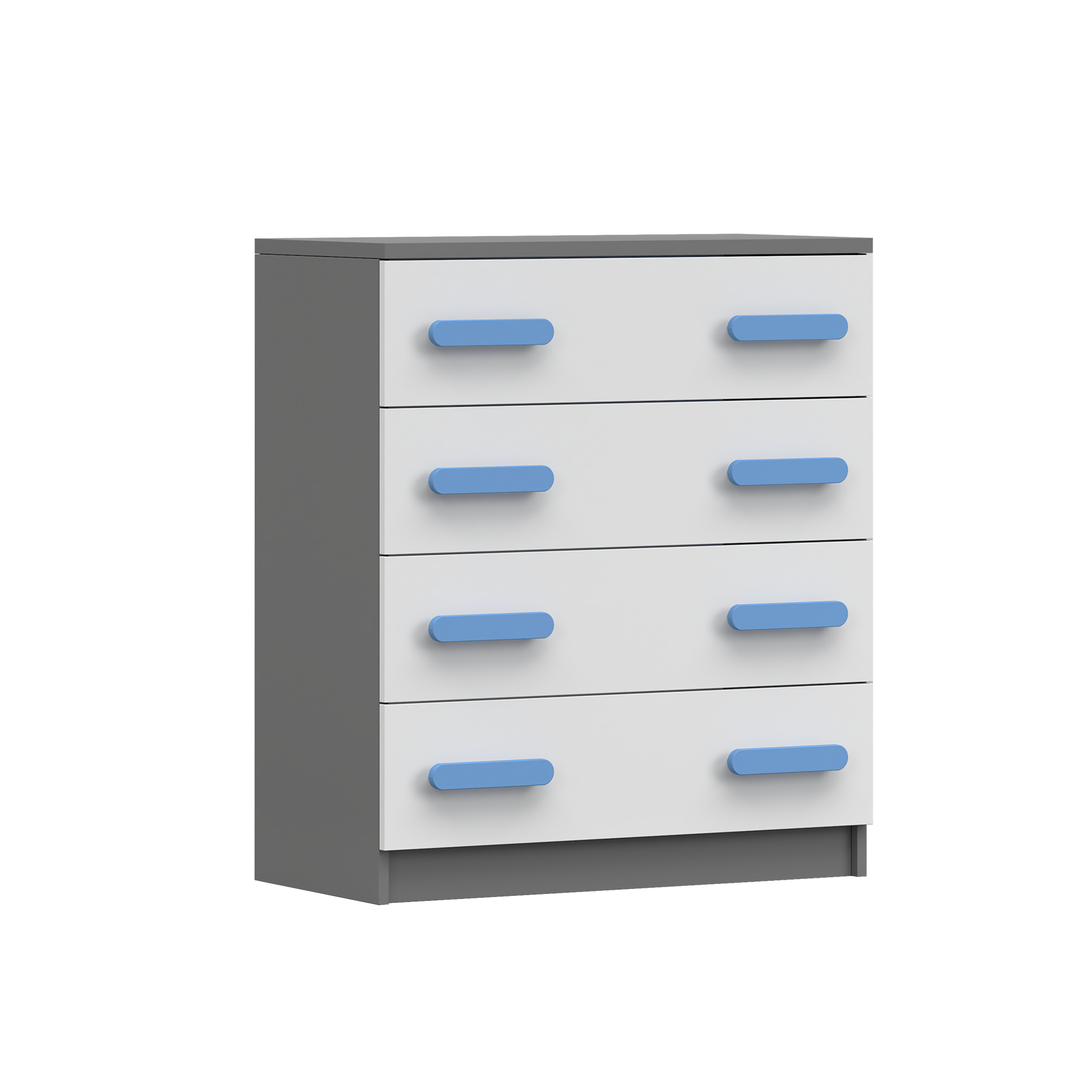 NODI GREY to zbiór nowoczesnych, funkcjonalnych i stylowych mebli przeznaczonych dla młodszych użytkowników. Kolekcja charakteryzuje się wysoką jakością wykonania oraz atrakcyjnym designem, który doskonale wpisuje się w gusta i potrzeby współczesnej młodzieży. Seria wyróżnia się elegancką kolorystyką, w której dominują grafit w połączeniu z bielą i kolorowymi detalami w postaci uchwytów. Te stonowane, nowoczesne kolory tworzą harmonijną i spokojną atmosferę, która doskonale wpisuje się w gusty młodzieży. Kolekcja mebli młodzieżowych NODI GREY oferuje szeroką gamę brył, takich jak łóżka, biurka, szafy, regały czy komody. Dają one możliwość tworzenia różnorodnych kompozycji w pokoju młodzieżowym, dostosowanych do indywidualnych potrzeb i preferencji.