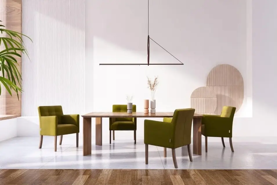 Krzesło FRESSIA jest modelem, który swym kształtem zbliża się do fotela. Lekko pochylone oparcie, ergonomiczne podłokietniki i miękkie siedzisko oferują bardzo wysoki komfort użytkowania. Przy tym mebel zachowuje swoje kompaktowe rozmiary właściwe dla klasycznych krzeseł.