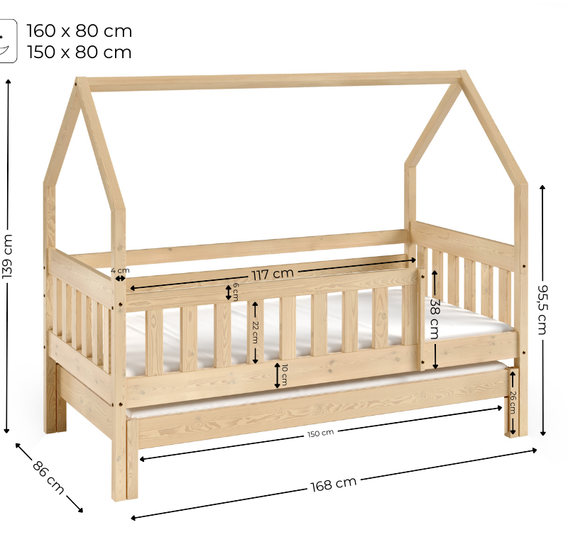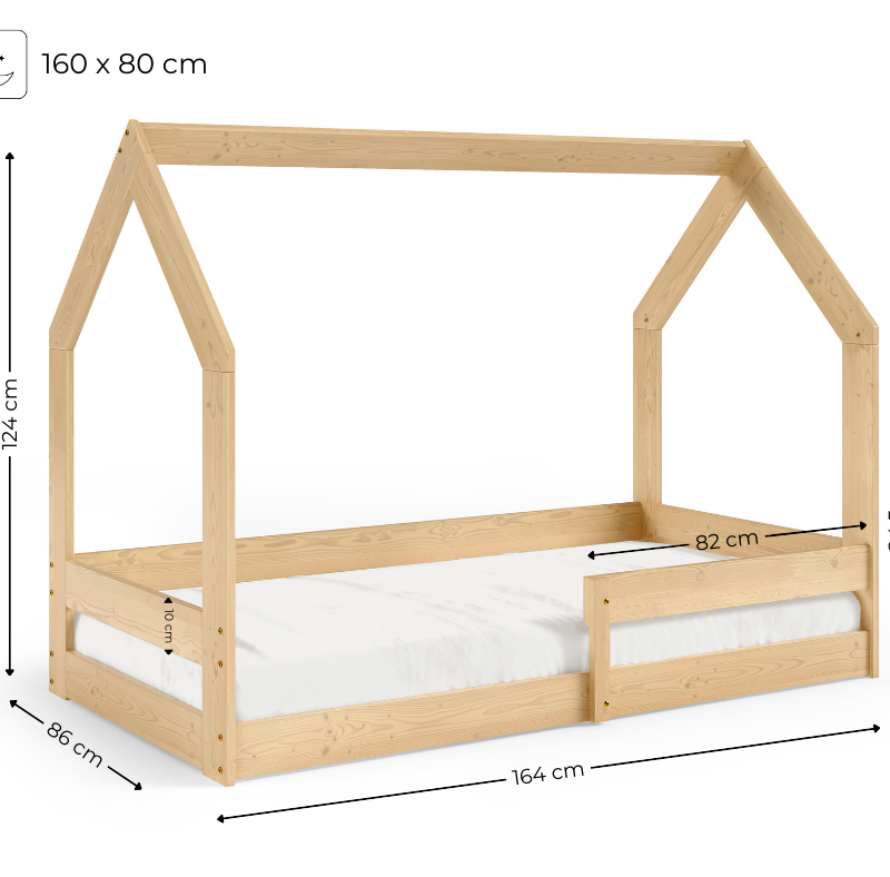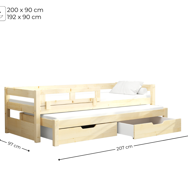 Łóżko TYMEK wykonano z wysokiej jakości drewna sosnowego, co zapewnia nie tylko estetyczny, naturalny wygląd, ale również wyjątkową trwałość i stabilność. Dodatkowo drewniana rama wpisuje się w aktualne trendy ekologiczne, a jej staranne wykończenie gwarantuje bezpieczeństwo i komfort użytkowania przez wiele lat. Minimalistyczny design pozwala na swobodne dopasowanie łóżka do różnych aranżacji, czyniąc je praktycznym i eleganckim wyborem do pokoju młodzieżowego.