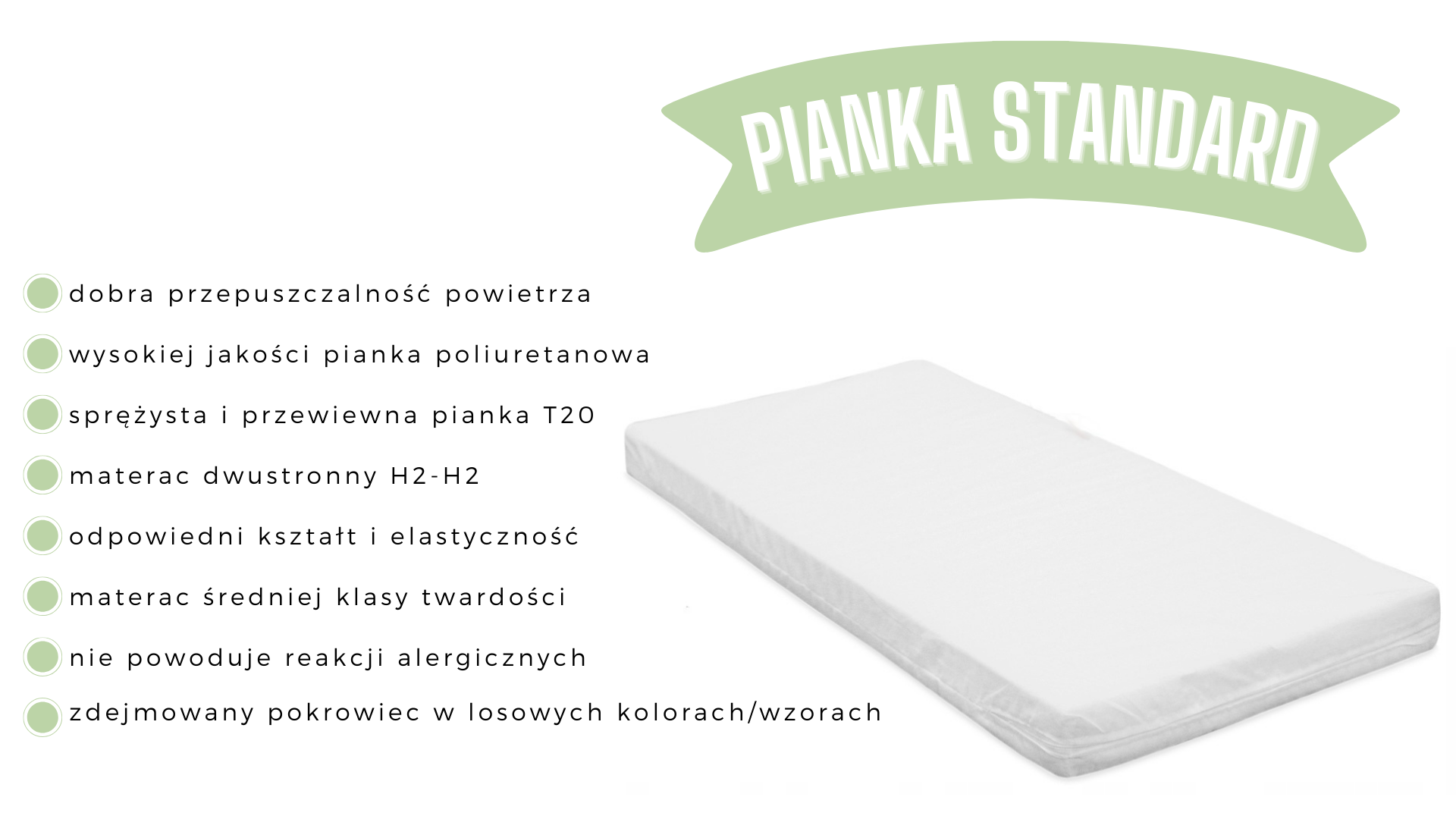 | Wybór materaca | bez materaca, materac piankowy STANDARD, materac sprężynowy BONELL, materac lateksowy VISCO LATEKS |