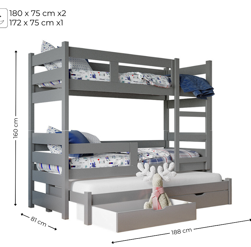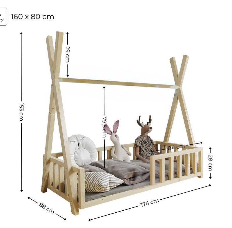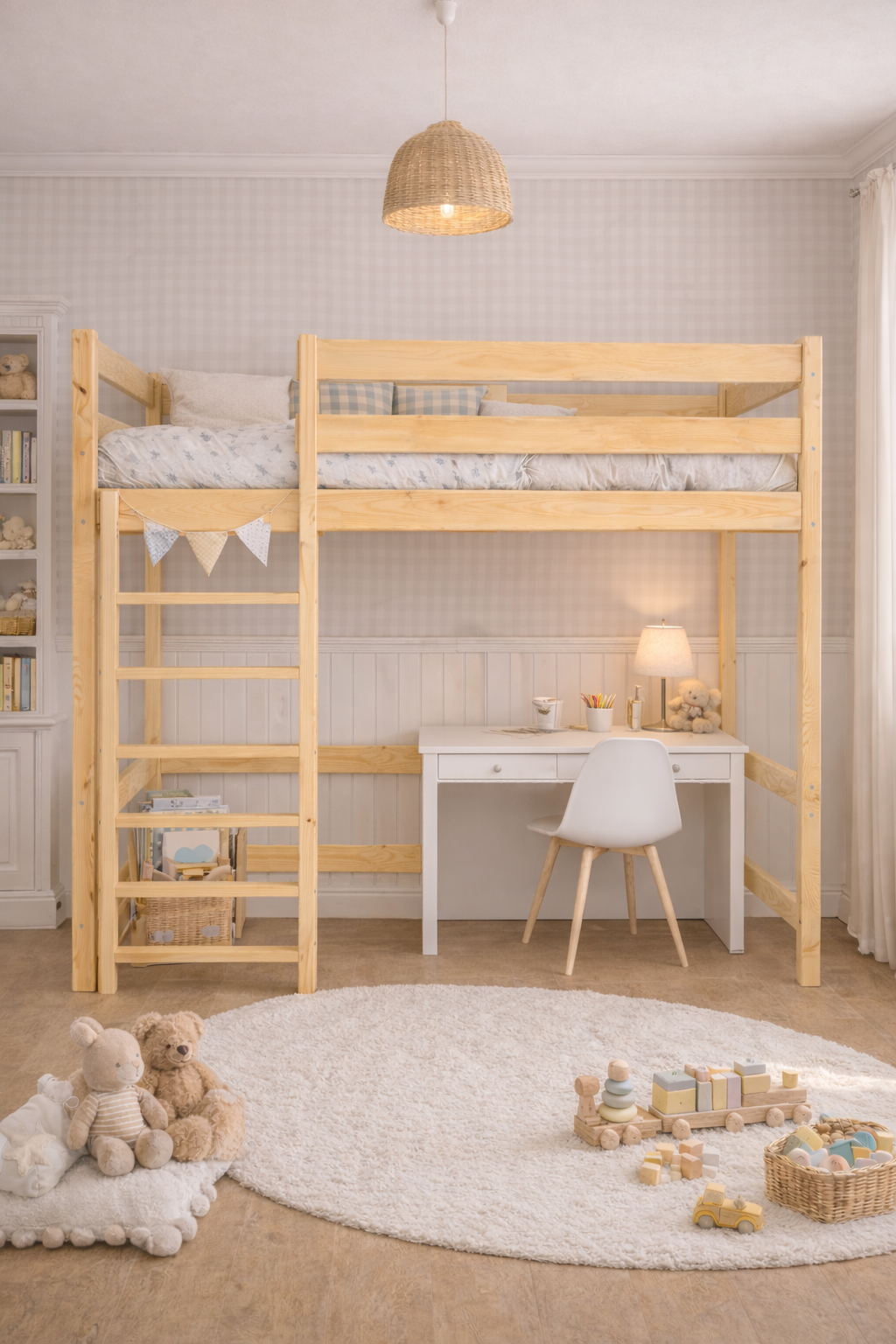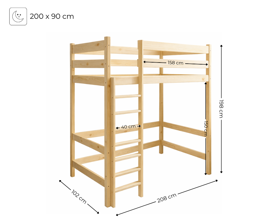 Powierzchnia spania 90×200 cm zapewnia wygodny sen nawet dorastającej osobie, a podwyższona konstrukcja łóżka TYMEK stwarza dodatkową przestrzeń, którą można przeznaczyć na naukę, zabawę lub przechowywanie. Naturalna kolorystyka drewna i prostota formy sprawiają, że pokój staje się przytulny i funkcjonalny, nawet w mniejszych pomieszczeniach. Przede wszystkim zapraszamy do zapoznania się z innymi łóżkami dziecięcymi z naszej oferty, które idealnie dopełnią wystrój pokoju Twojego dziecka.