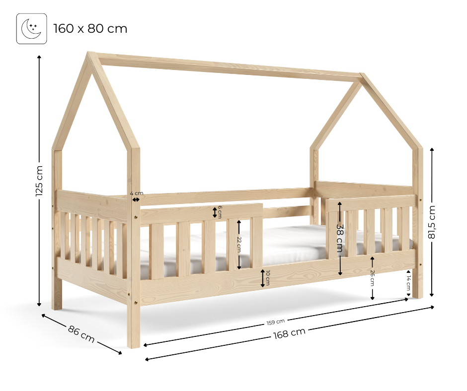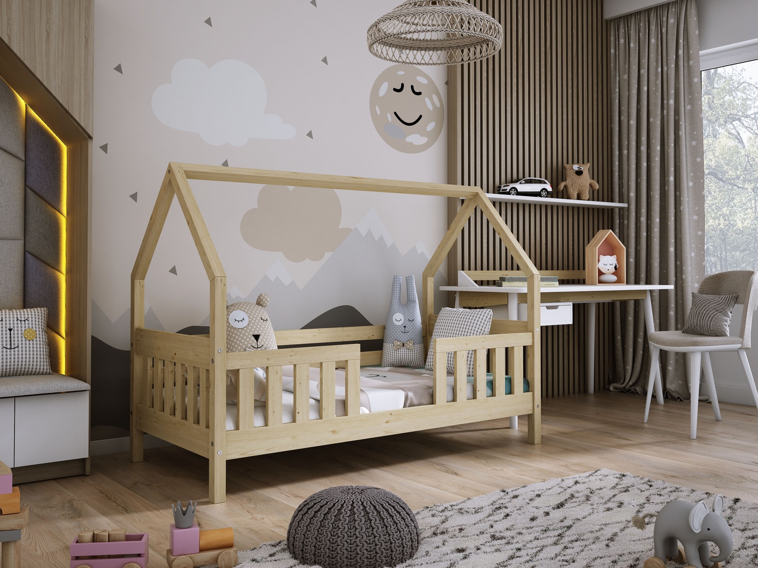 Bez wątpienia łóżko drewniane Dyzio to nie tylko wygodne miejsce do spania, ale również stylowy element wyposażenia dziecięcego pokoju. Dzięki swojej wyjątkowej formie w kształcie domku wprowadza do wnętrza ciepłą i kreatywną atmosferę. Dziecko może zarówno odpoczywać, jak i rozwijać wyobraźnię. Wykonane z wysokiej jakości drewna sosnowego, łóżko charakteryzuje się trwałością i naturalnym urokiem, który świetnie komponuje się z wieloma aranżacjami – od klasycznych po skandynawskie.