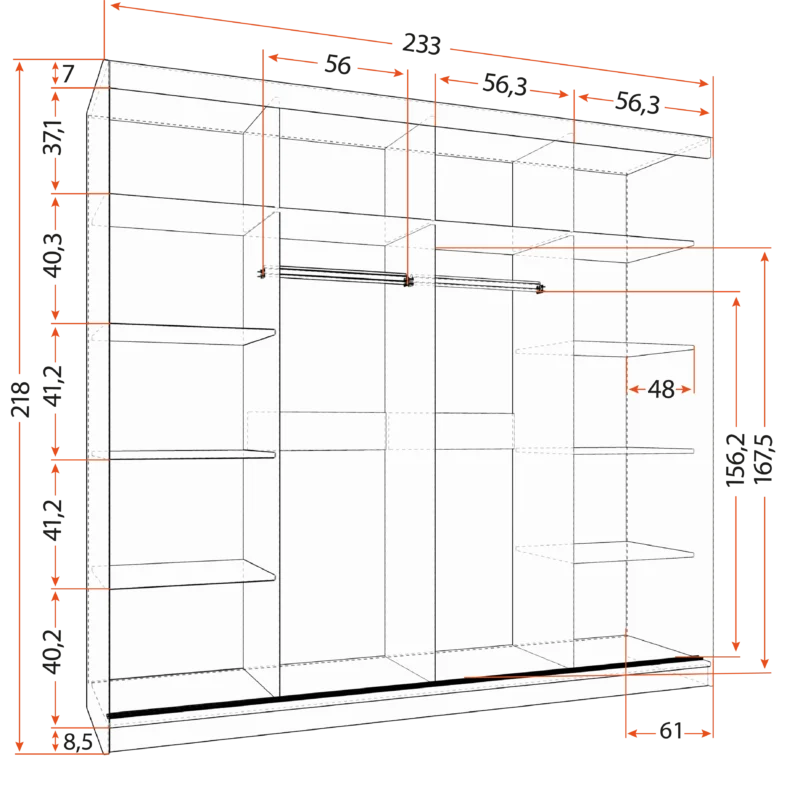 (wymiary całkowite: 164 / 104 / 208 cm)