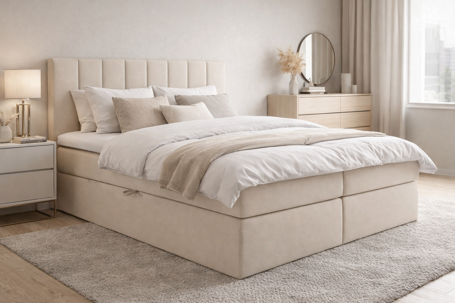 Bez wątpienia łóżko kontynentalne Coral to doskonały wybór dla osób, które chcą połączyć luksusowy wygląd sypialni z codziennym komfortem snu. Poza tym dzięki eleganckiemu designowi oraz funkcjonalnym rozwiązaniom, ten model staje się centralnym punktem każdej nowoczesnej aranżacji. Co więcej, łóżko dostępne jest z opcjonalnym topperem, który podnosi poziom wygody, a także z pojemnym schowkiem na pościel – co czyni go wyjątkowo praktycznym na co dzień.