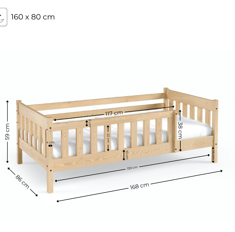 Funkcjonalność modelu została wzbogacona o dwie duże szuflady, które świetnie sprawdzą się jako miejsce na pościel, zabawki lub codzienne drobiazgi. Dzięki temu dzieci uczą się porządku i lepszej organizacji przestrzeni. Całość tworzy harmonijną kompozycję, w której estetyka idzie w parze z użytkowością. Łóżko sprawdzi się doskonale zarówno w mniejszych pokojach dziecięcych, jak i większych przestrzeniach, w których każdy centymetr ma znaczenie.