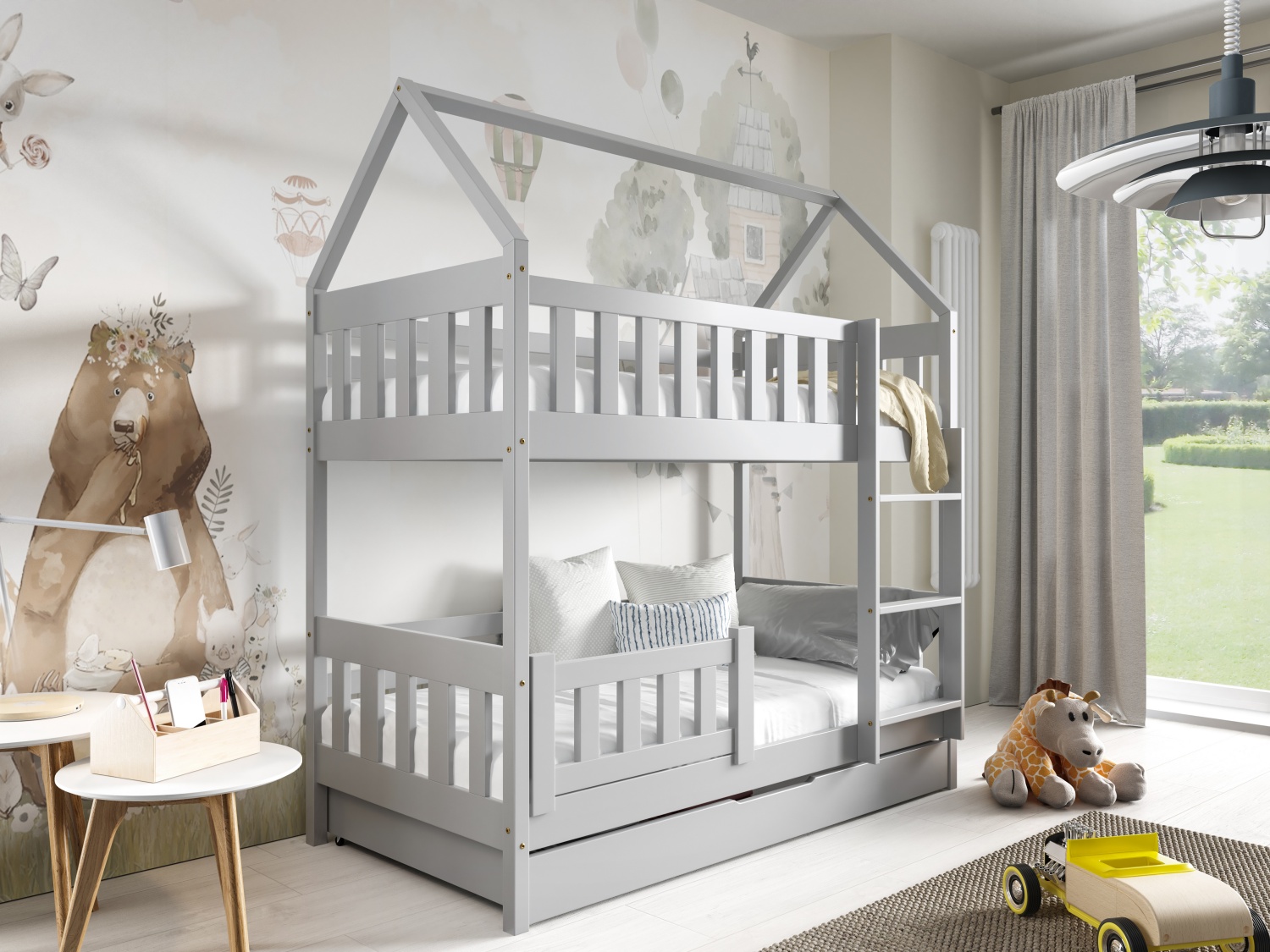 Łóżko piętrowe ZUZIA – szary