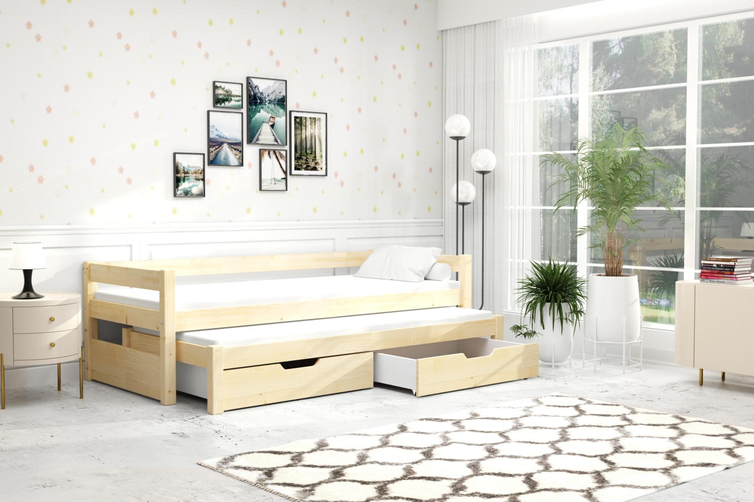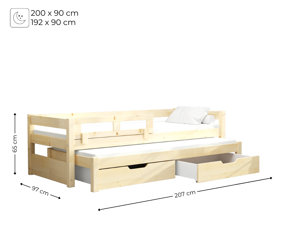 To łóżko zostało zaprojektowane tak, aby za dnia pełniło funkcję wygodnego miejsca do zabawy i odpoczynku. Natomiast wieczorem bez problemu przemieniało się w komfortową strefę snu dla dwóch osób. Dzięki praktycznej wysuwanej platformie, łóżko podwójne Tommy zapewnia dwa poziomy spania. Co czyni je niezwykle funkcjonalnym meblem w codziennym użytkowaniu. Z myślą o bezpieczeństwie najmłodszych, istnieje możliwość wyposażenia łóżka w nakładaną barierkę ochronną.