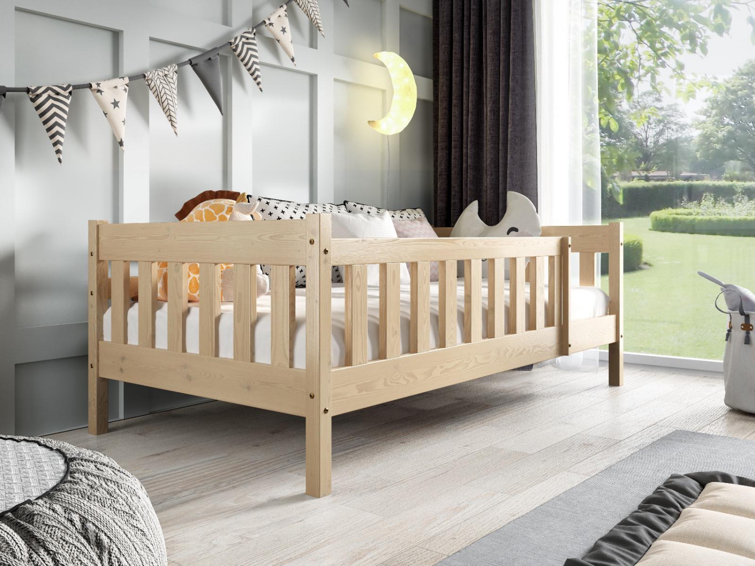 Łóżko wykonane w większości z drewna sosnowego malowanego trzykrotnie ekologicznymi farbami posiadającymi certyfikat bezpieczeństwa. W komplecie z łóżeczkiem otrzymujesz piankowy materac z możliwością wypinania poszewki, stelaż pod materac oraz barierkę ochronną dla podniesienia poziomy bezpieczeństwa użytkowania. Łóżko można dodatkowo wyposażyć w pojemną i funkcjonalną szufladę, której boczne elementy wykonane są z wysokiej jakości płyty meblowej.