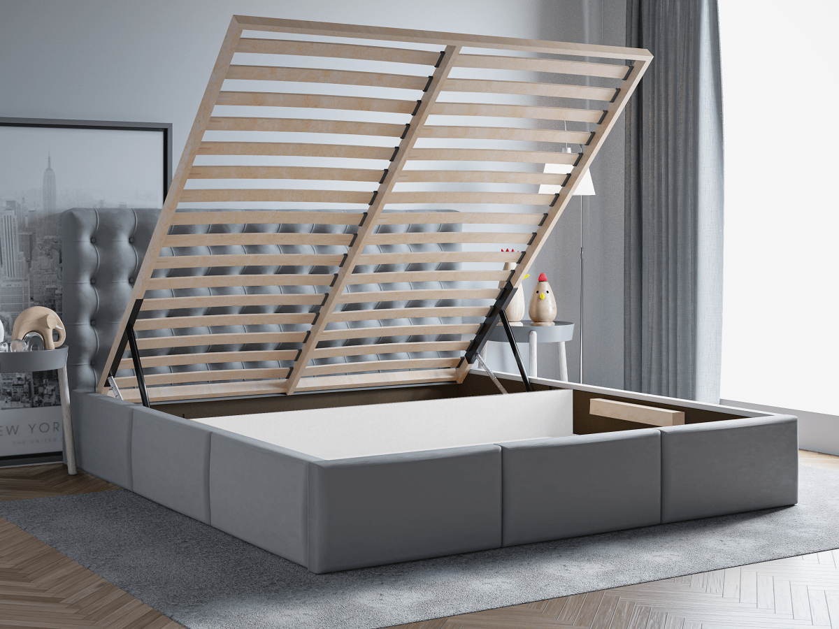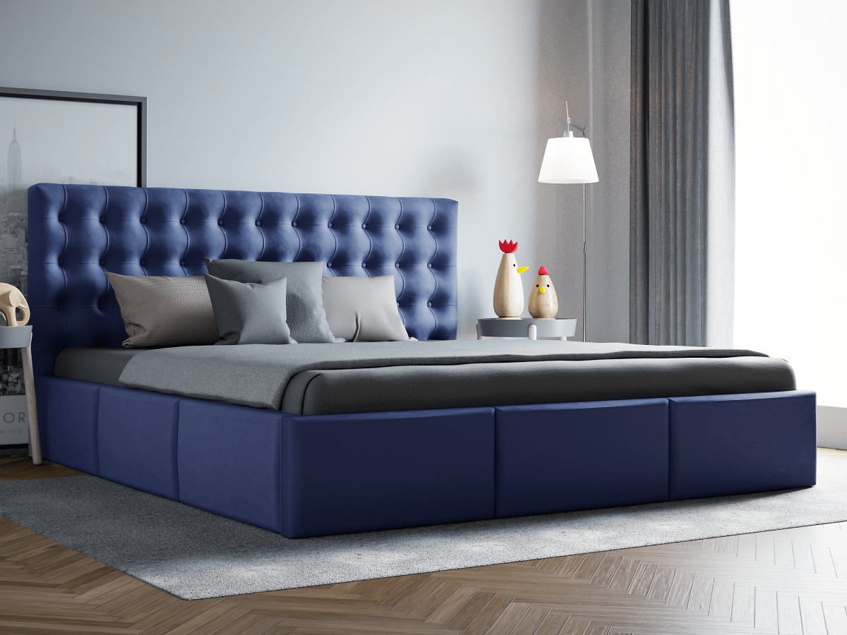 Bravo to łóżko obite miłą w dotyku tkaniną pluszową o intensywnej barwie, która ożywi wystrój Twojej sypialni. Solidna konstrukcja z płyty meblowej i drewna składa się ze skrzyni, w której znajduje się obszerny pojemnik na pościel czy inne tekstylia – dzięki temu zaoszczędzisz mnóstwo miejsca do przechowywania. Na podstawie łóżka umieszczono drewniany stelaż wyposażony w podnośniki sprężynowe, które ułatwią Ci dostanie się do schowka. Bryłę korpusu ozdobiono gustownym pikowaniem, które nadaje całości elegancji i oryginalnego wykończenia. Bravo fantastycznie sprawdzi się we wnętrzach w klimacie glamour podkreślając ich wyrafinowanie, a także w bardziej stonowanych i skromnych aranżacjach, gdzie będzie głównym punktem skupiającym wzrok.