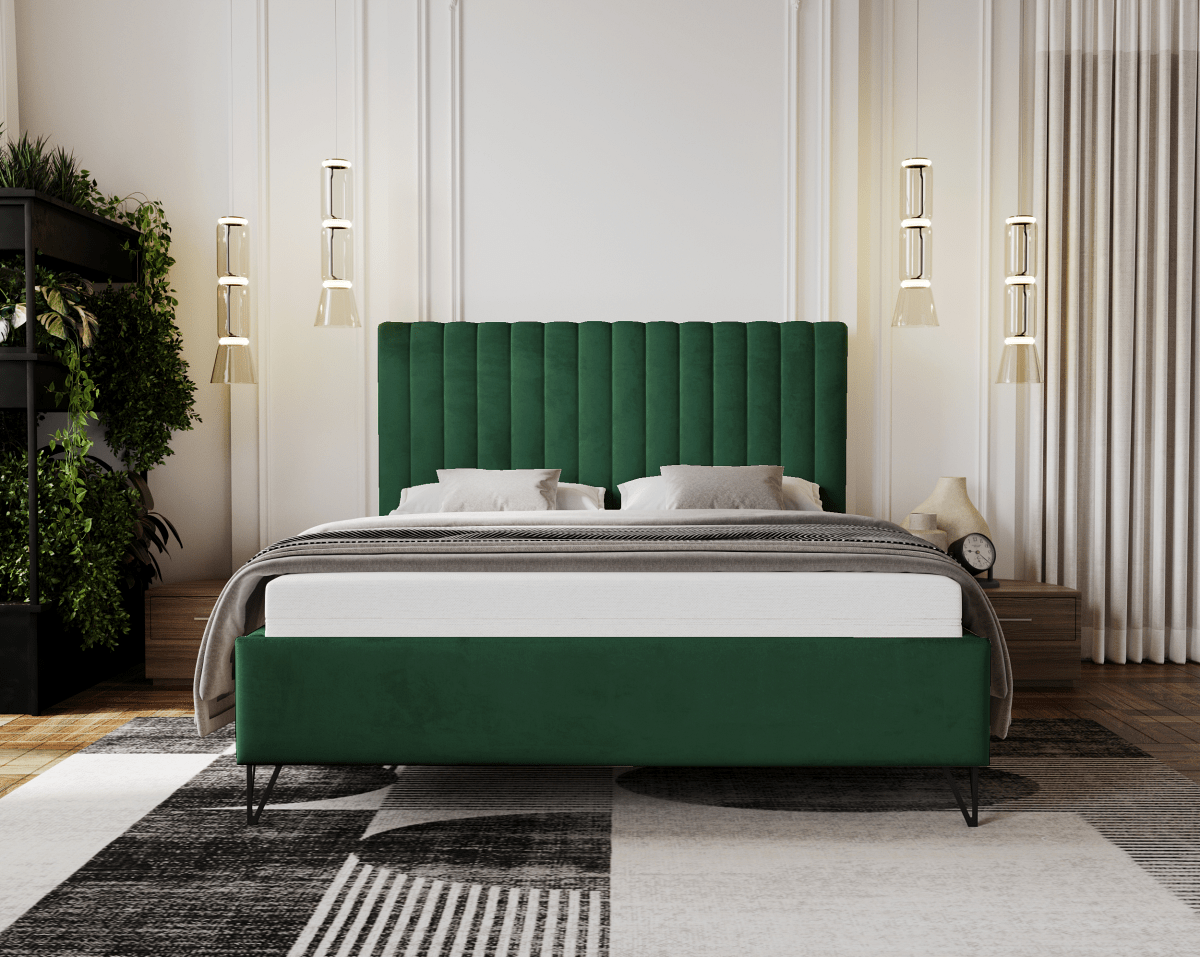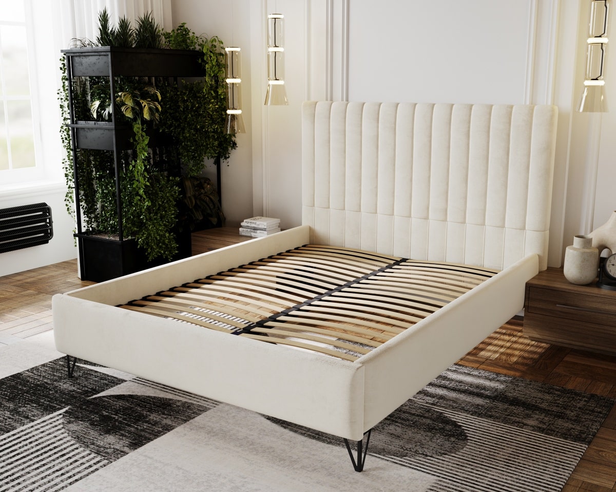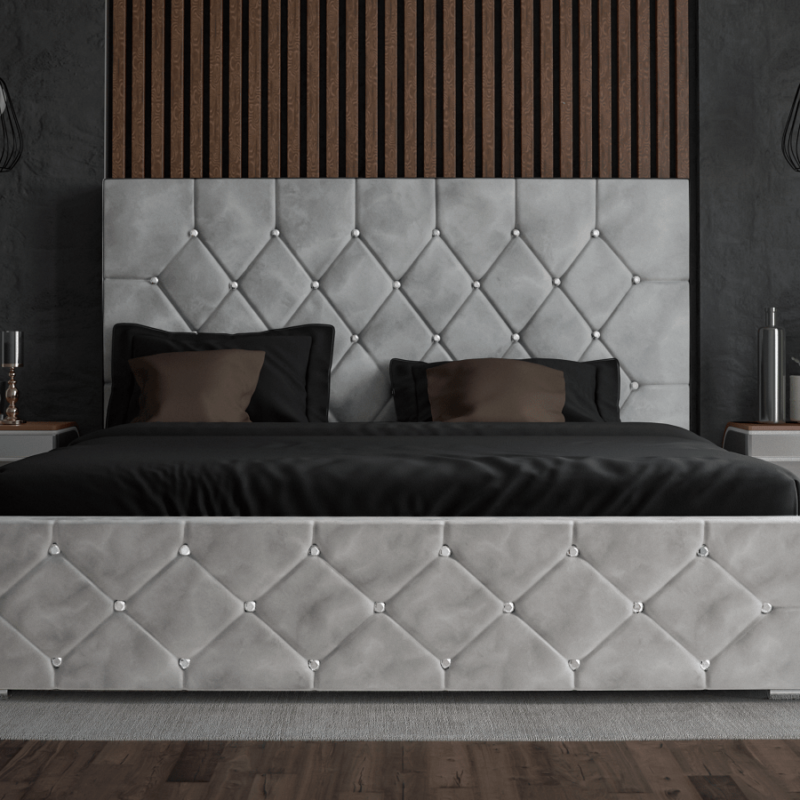 Wyróżnij swoją sypialnię z wyjątkowym modelem łóżka tapicerowanego PANAMA, na którym odpoczniesz i zrelaksujesz się po ciężkim dniu. Elementem ozdobnym i przykuwającym uwagę jest wysokie wezgłowie oraz metalowe czarne nóżki. Stabilna i trwała konstrukcja pozwoli na użytkowanie przez długie lata.