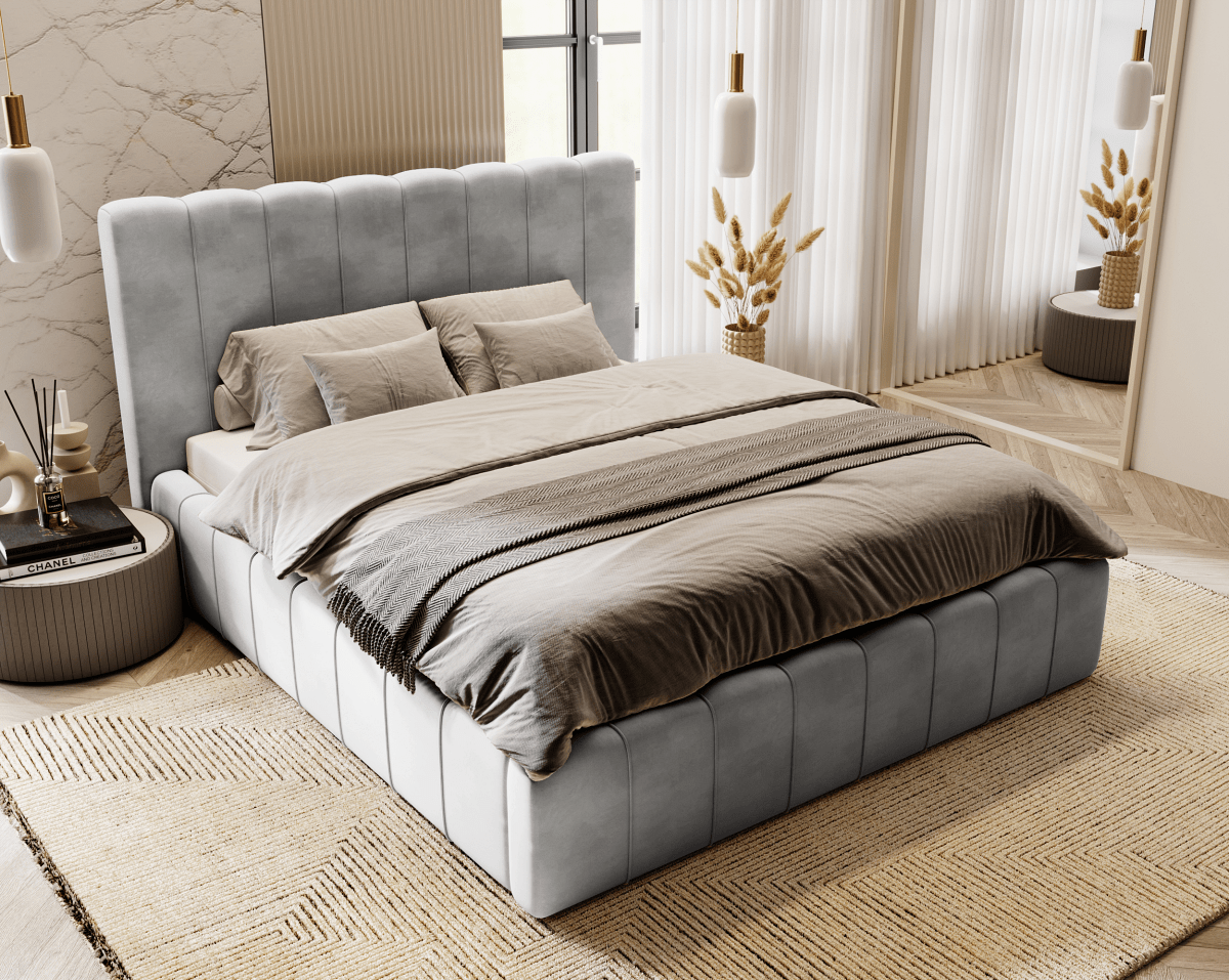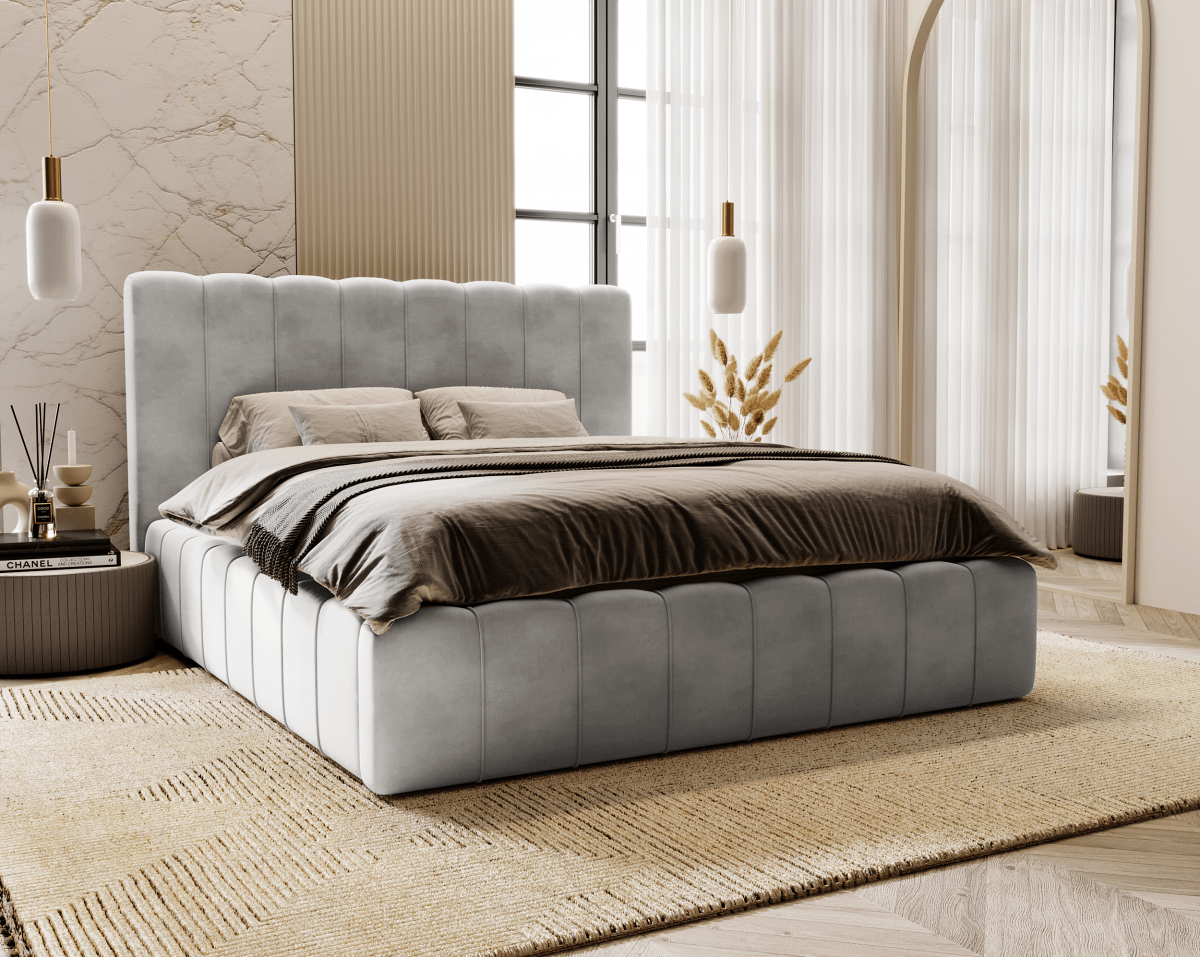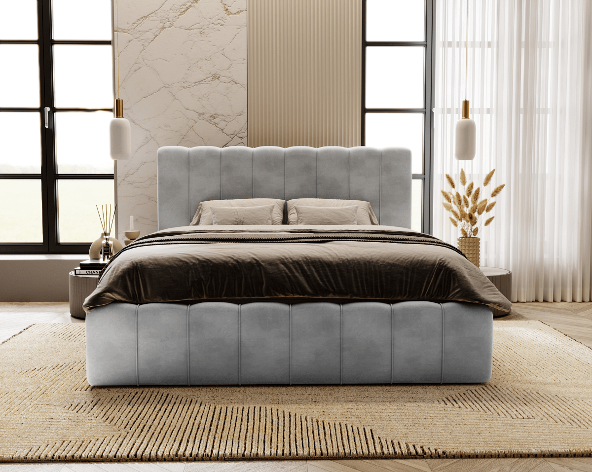 Model Łóżko tapicerowane Porto został wyposażony w wysokie, grube wezgłowie, pokryte miękką pianką, które nie tylko przyciąga wzrok, ale również zapewnia komfort podczas wieczornego relaksu. Dzięki solidnej konstrukcji łóżko posłuży Ci przez wiele lat, a jego uniwersalna forma idealnie wpisze się zarówno w nowoczesne, jak i klasyczne aranżacje.