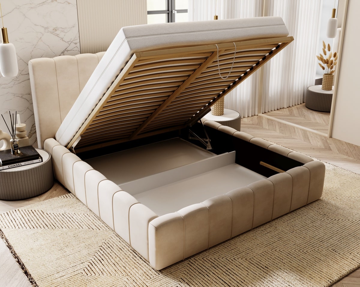 - Wygodny pojemnik na pościel, który zapewnia dodatkową przestrzeń do przechowywania i pomaga utrzymać porządek w sypialni.