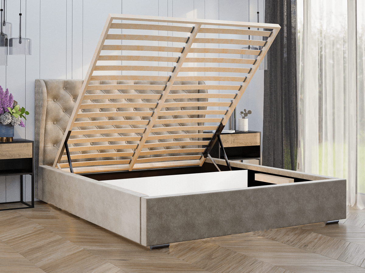 Preston to szykowna bryła o ciekawej formie, która z pewnością przyciągnie każdy wzrok. Oryginalny kształt oraz wyraziste pikowane wezgłowie dodadzą wnętrzu przytulności i elegancji – dzięki temu łóżko świetnie sprawdzi się w aranżacjach w stylu glamour. Preston posiada w zestawie drewniany stelaż, wzbogacony o podnośnik, gazowy, który pozwala w niezwykle prosty sposób i bez zbędnego wysiłku dostać się do obszernego pojemnika na pościel gdzie z łatwością przechowasz nie tylko tekstylia.