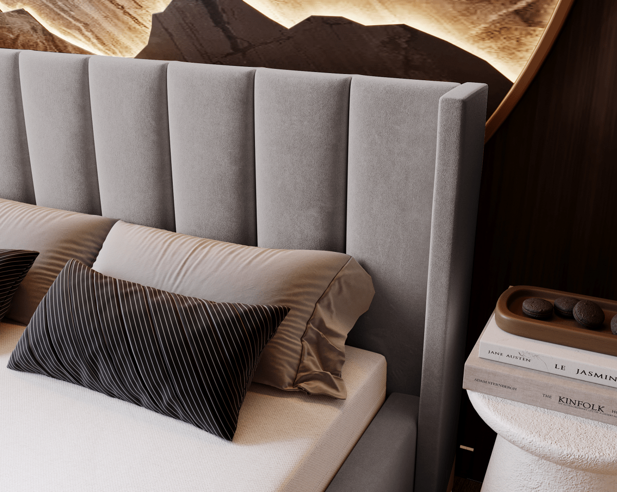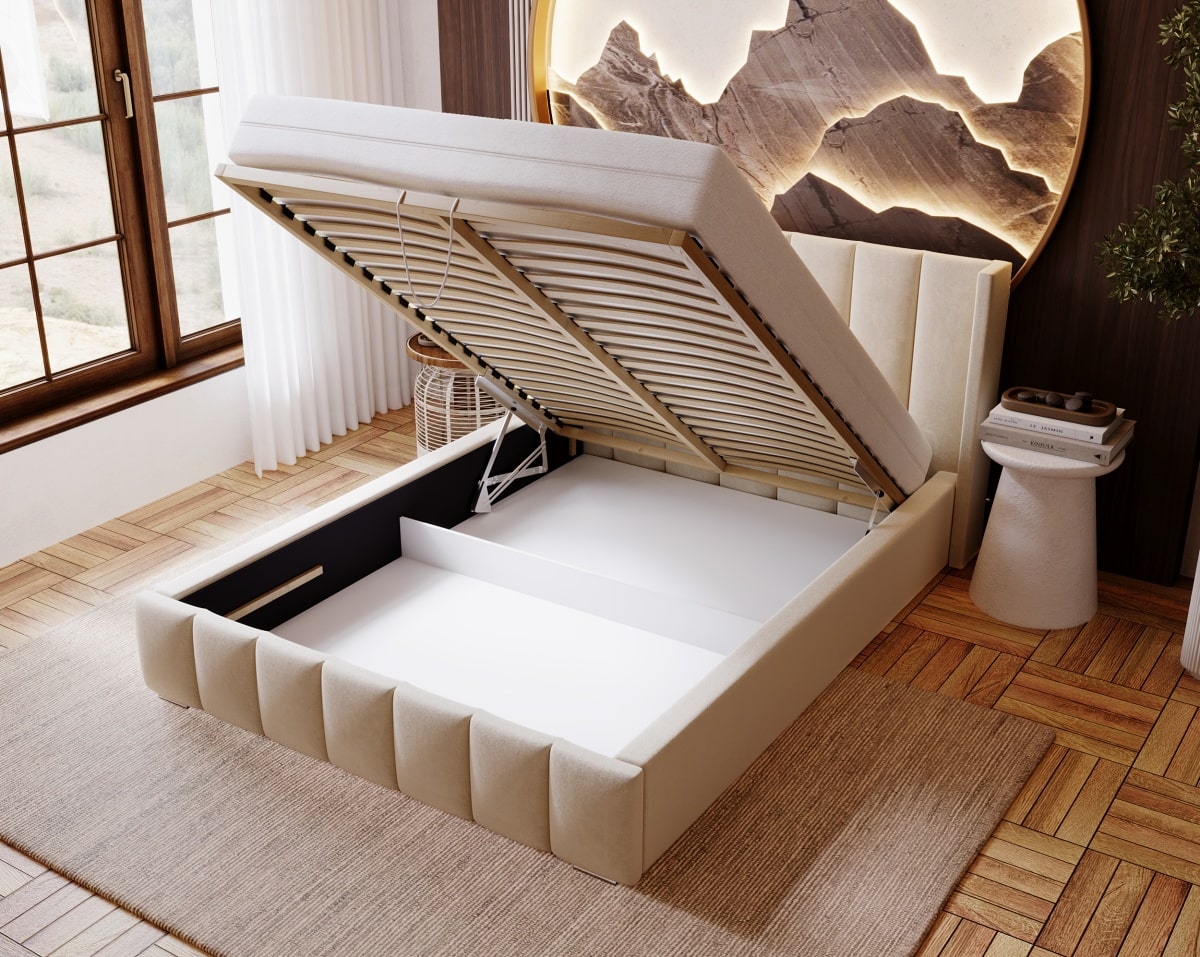 Verona to piękne łóżko tapicerowane posiadające ozdobne, pionowe przeszycia zarówno na wezgłowiu jaki na samej ramie. Zaokrąglone kształty łóżka dodają mu przytulności, od progu zachęcając do relaksu po dniu pełnym wyzwań. Wygodne zagłowie pozwala komfortowo oprzeć plecy w czasie czytania ciekawej książki czy filmowego seansu przed snem. Verona posiada przestronny pojemnik na pościel, do którego dostaniesz się z łatwością za sprawą solidnego drewnianego stelaża wyposażonego w podnośniki gazowe wspomagające jego otwieranie.