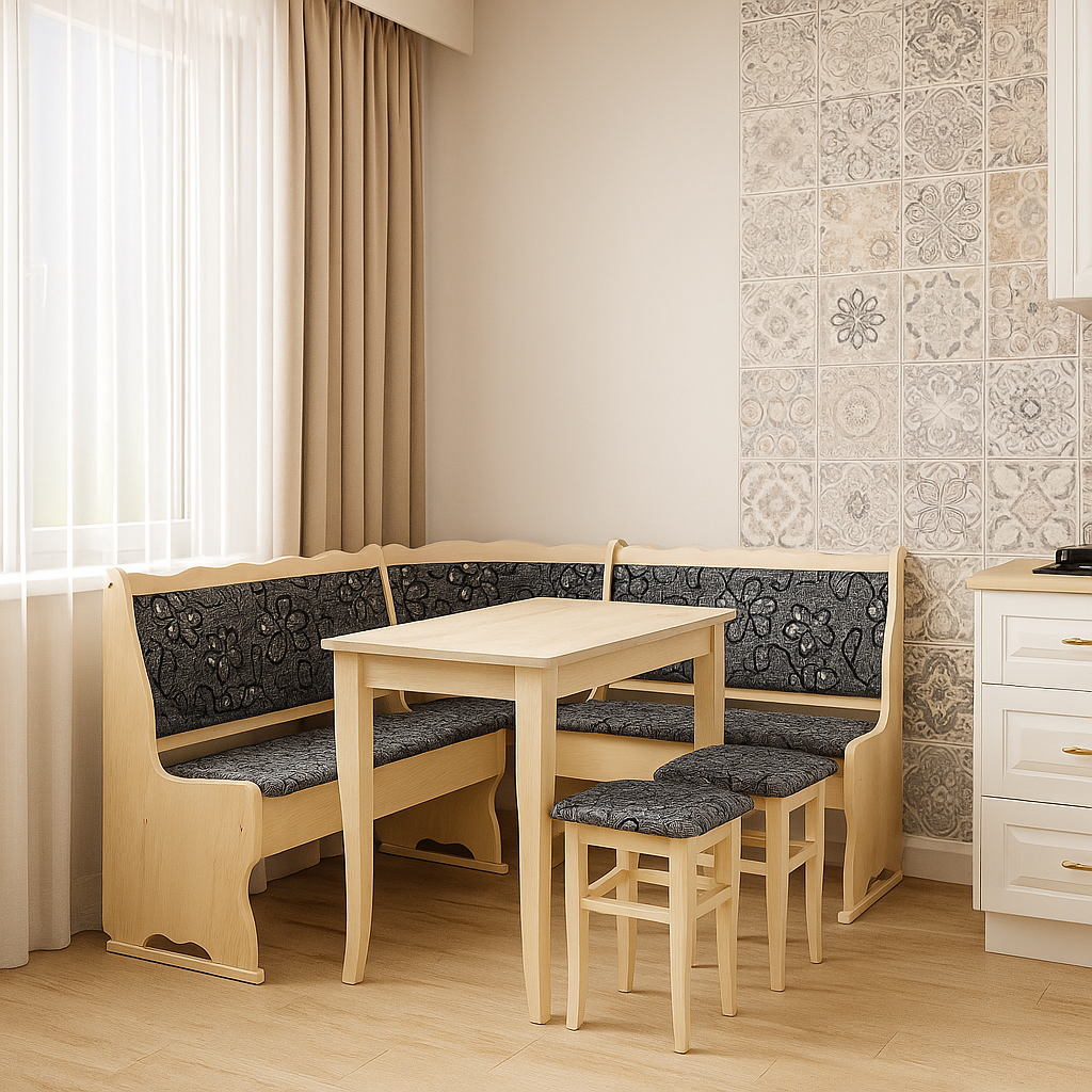 Zaufaj nam! Narożnik kuchenny N1 to doskonały sposób na organizację kącika jadalnego i przy okazji ekonomiczne zagospodarowanie kuchennej przestrzeni. Wkomponowany w róg pomieszczenia nie wymaga zachowania wolnego miejsca na odsuwanie, jak to ma miejsce w przypadku krzeseł. Jest też bardzo komfortowy i pojemny zapewniając wygodne siedzenie kilku osobom. To idealny mebel dla rodzin, w których są małe dzieci. Usytuowanie zapobiega kręceniu się i wstawaniu od stołu bez potrzeby, a także eliminuje ryzyko przewrócenia się czy spadnięcia. Dzięki pięknemu wykończeniu narożnik może też być ustawiony z dala od ściany.