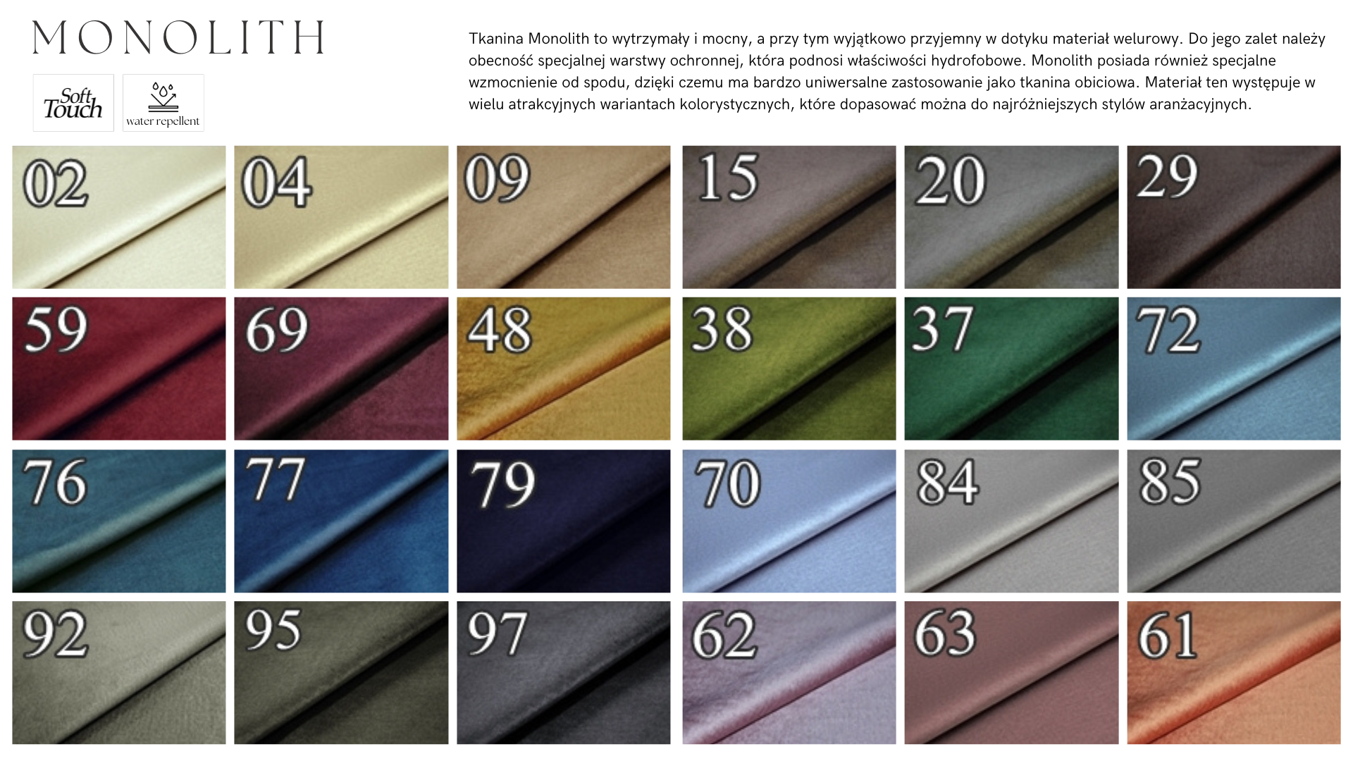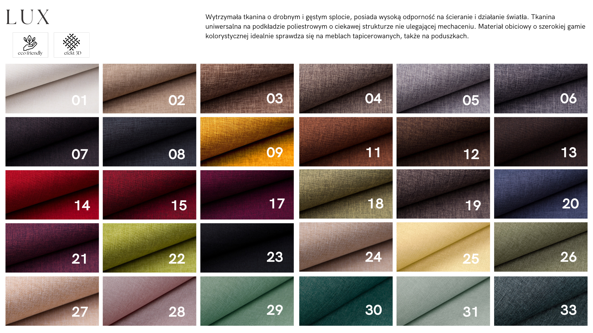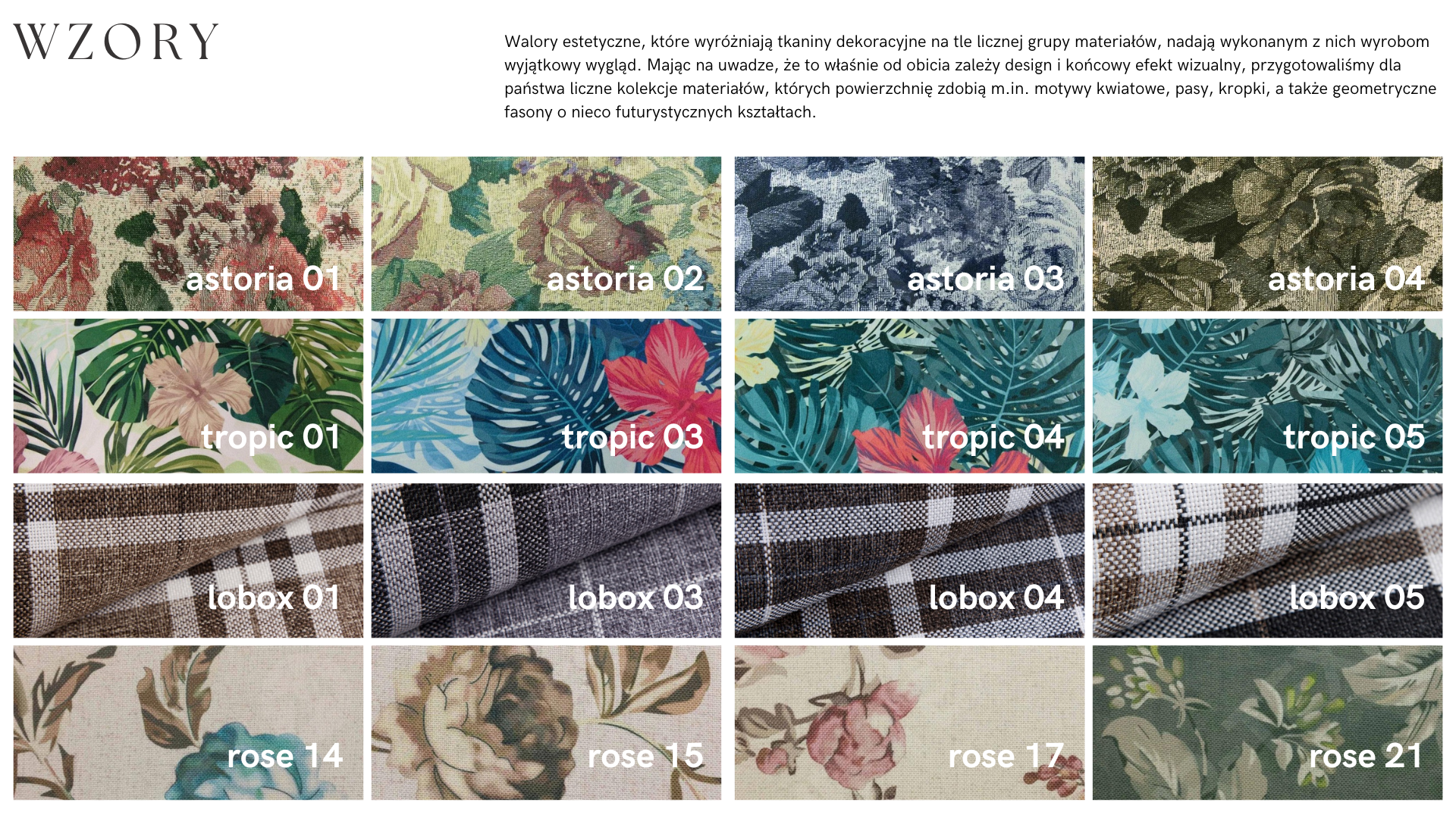 - plamoodporne i łatwe w utrzymaniu czystości tkaniny w cenie
