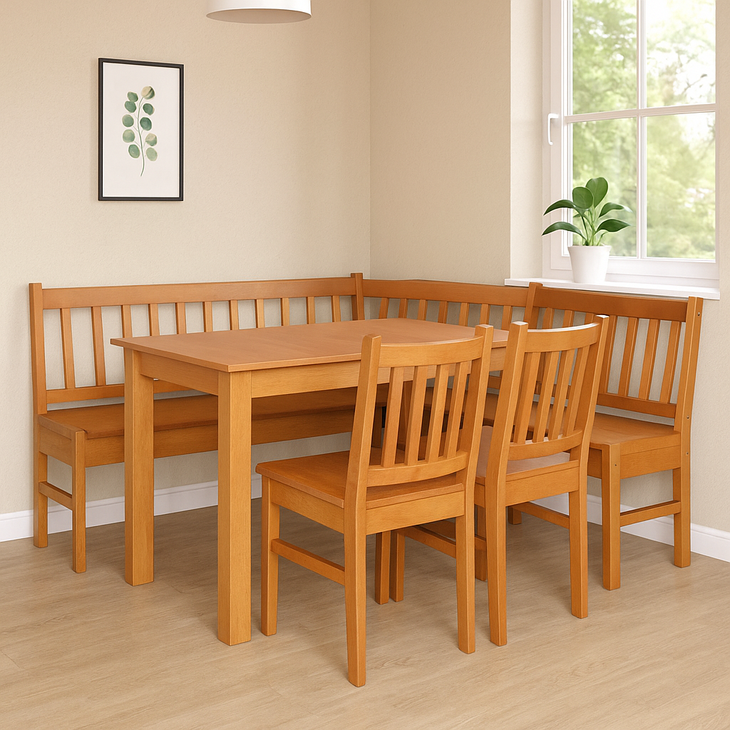 Zaufaj nam! Narożnik kuchenny N21 to doskonały sposób na organizację kącika jadalnego i przy okazji ekonomiczne zagospodarowanie kuchennej przestrzeni. Wkomponowany w róg pomieszczenia nie wymaga zachowania wolnego miejsca na odsuwanie, jak to ma miejsce w przypadku krzeseł. Jest też bardzo komfortowy i pojemny zapewniając wygodne siedzenie kilku osobom. To idealny mebel dla rodzin, w których są małe dzieci. Usytuowanie zapobiega kręceniu się i wstawaniu od stołu bez potrzeby, a także eliminuje ryzyko przewrócenia się czy spadnięcia. Dzięki pięknemu wykończeniu narożnik może też być ustawiony z dala od ściany.