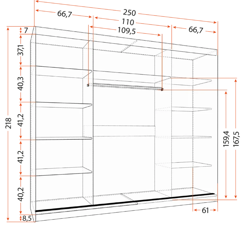 szerokość całkowita: 282 cm