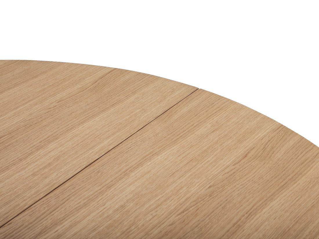 Blat oklejony fornirem dębowym, dzięki czemu stół zyskuje trwałość i naturalny, elegancki wygląd.