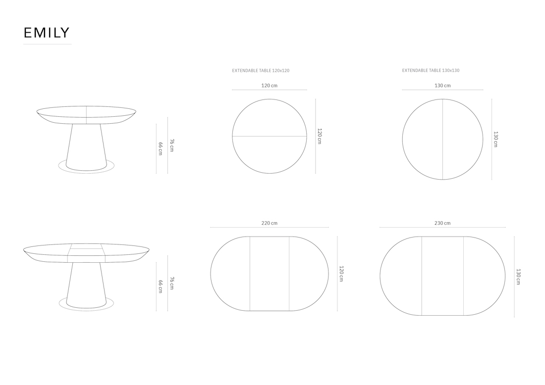 | Dostępny wymiar stołu | 120-220 / 120 cm, 130-230 / 130 cm |