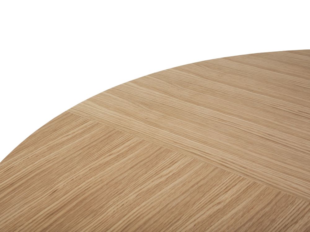 Blat oklejony fornirem dębowym, dzięki czemu stół zyskuje trwałość i naturalny, elegancki wygląd.