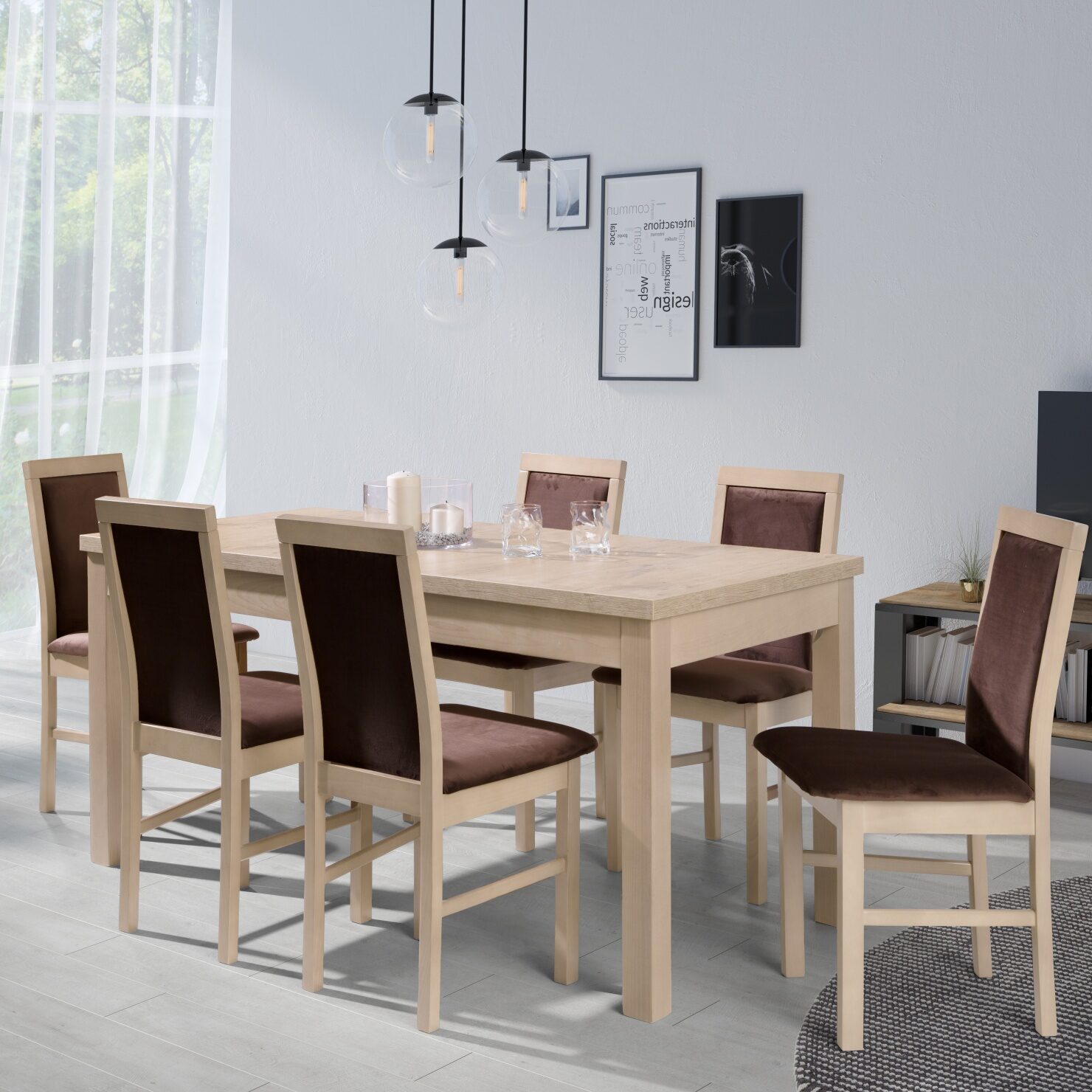 Stół został wykonany z wysokiej jakości płyty wiórowej laminowanej, co pozwala zachować wygląd drewnianych słojów. Ten luksusowy efekt wizualny materiału w połączeniu z kolorystyką sprawia, że stół doskonale komponuje się zarówno z przestronnymi jadalniami, jak i pokojami dziennymi utrzymanymi w stylach rustykalnym, kolonialnym lub loftowym. Dodatki rustykalne podkreślą jego surowy charakter, elementy kolonialne świetnie współgrają z jego masywnością, a wystrój z wykorzystaniem metalowych detali pozwoli wydobyć z mebla inspiracje loftowe. Wybierając solidny i masywny stół rozkładany do wnętrza, w którym meble tworzą ponadczasową i efektowną aranżację, zyskujesz możliwość dopasowania go do różnych stylów i gustów. Łącząc go z drewnianymi krzesłami osiągniesz naturalny efekt, a zestawienie z tapicerowanymi krzesłami podkreśli klasyczną elegancję wnętrza.