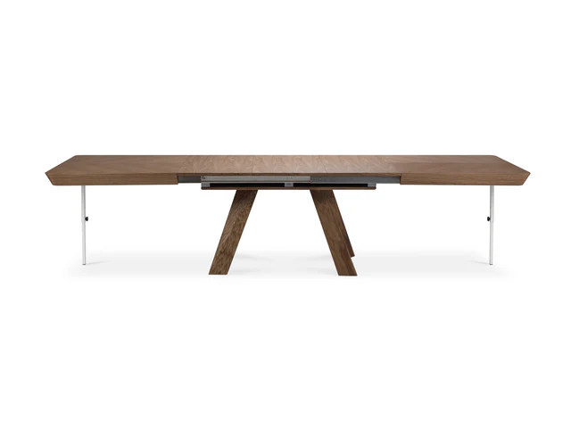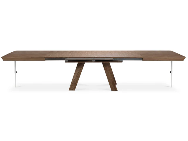 • rozsuwany blat – prowadnica synchroniczna (wkładki chowane pod blat), wkładki mogą delikatnie różnić się odcieniem oraz układem forniru od blatu stołu