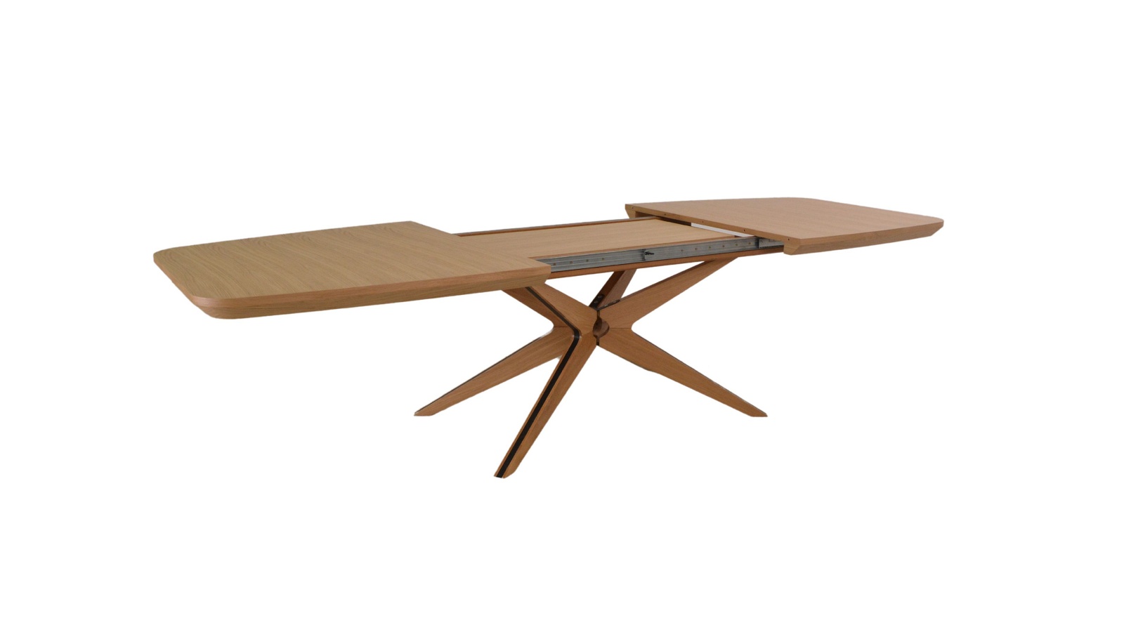Prowadnice synchroniczne, które umożliwiają płynne i wygodne rozkładanie stołu.