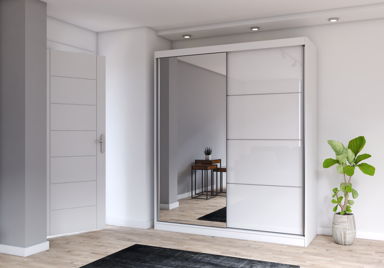 Bez wątpienia Szafa Nubia 35 to propozycja dla osób, które cenią sobie połączenie elegancji z praktycznością. Jej prosty, ale efektowny design z ozdobnymi szprosami w pół-połysku i dużym lustrem na froncie sprawia, że świetnie wpisuje się zarówno w klasyczne, jak i nowoczesne wnętrza. Dodatkowo dzięki możliwości wyboru spośród kilku modnych wariantów kolorystycznych, szafa idealnie dopasuje się do różnych aranżacji – od sypialni po przedpokój. Z pewnością zastosowanie systemu drzwi przesuwnych umożliwia wygodne użytkowanie mebla. Nawet w mniejszych przestrzeniach, bez potrzeby rezerwowania dodatkowego miejsca na otwieranie frontów.