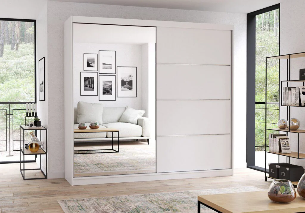 Biały Mat z lustrem – idealny do wnętrz w stylu skandynawskim lub nowoczesnym, dodaje lekkości i subtelności.