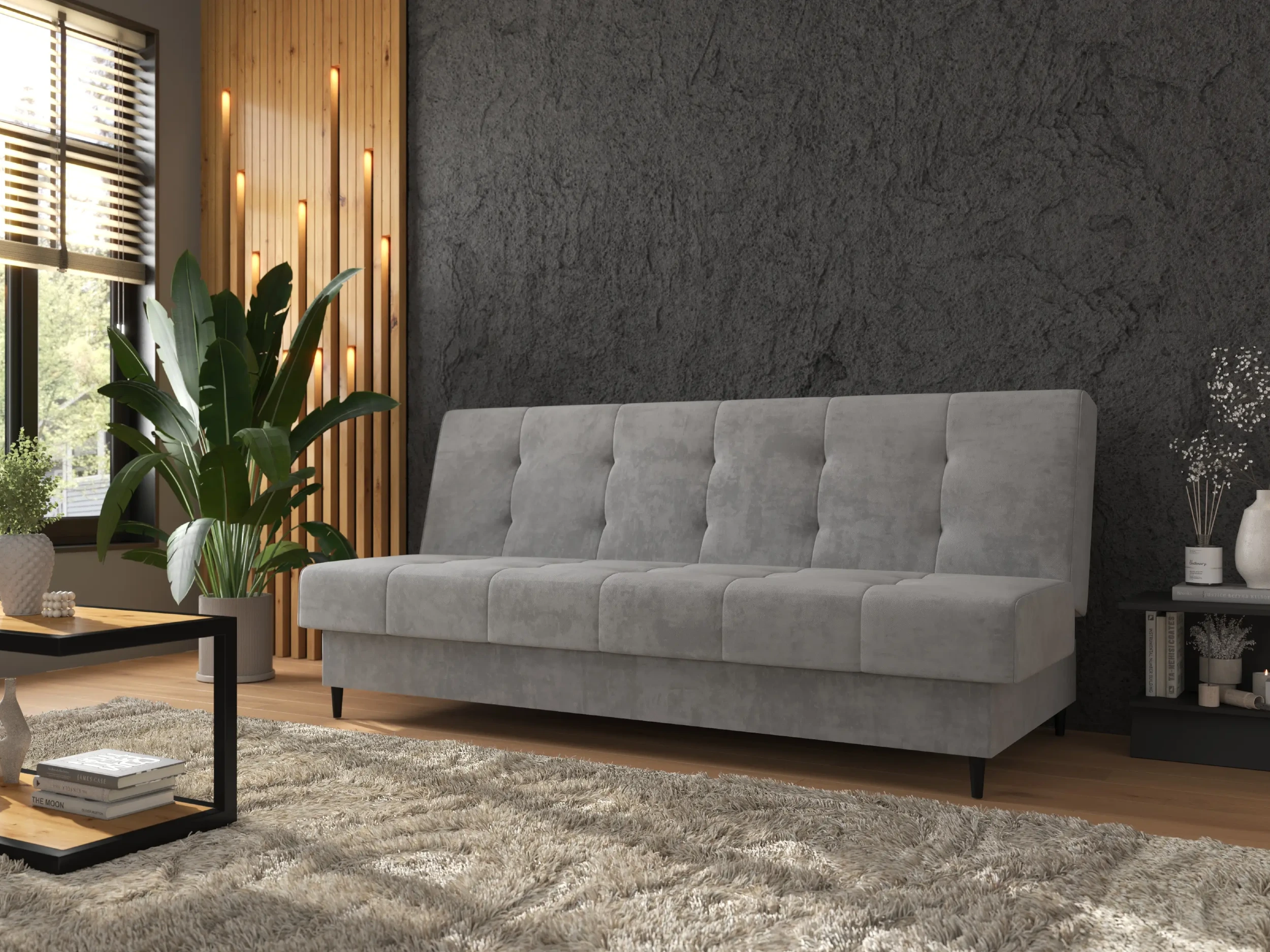 Bez wątpienia Wersalka Kora to propozycja, która łączy w sobie nowoczesny wygląd, komfort oraz praktyczne rozwiązania. Dzięki temu sprawdzi się zarówno w salonie, jak i w pokoju dziennym czy mieszkaniu typu studio. Jej elegancką formę wzbogaciliśmy o wysokie, smukłe nóżki, które dodają lekkości i jednocześnie zapewniają stabilność. Dzięki obiciu z miękkiej i efektownej tkaniny welurowej całość prezentuje się niezwykle stylowo, a dodatkowe przeszycia i delikatne pikowania podkreślają jej charakter.