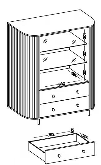 - Dwoje drzwi i dwie szuflady – funkcjonalne połączenie ekspozycji i przechowywania