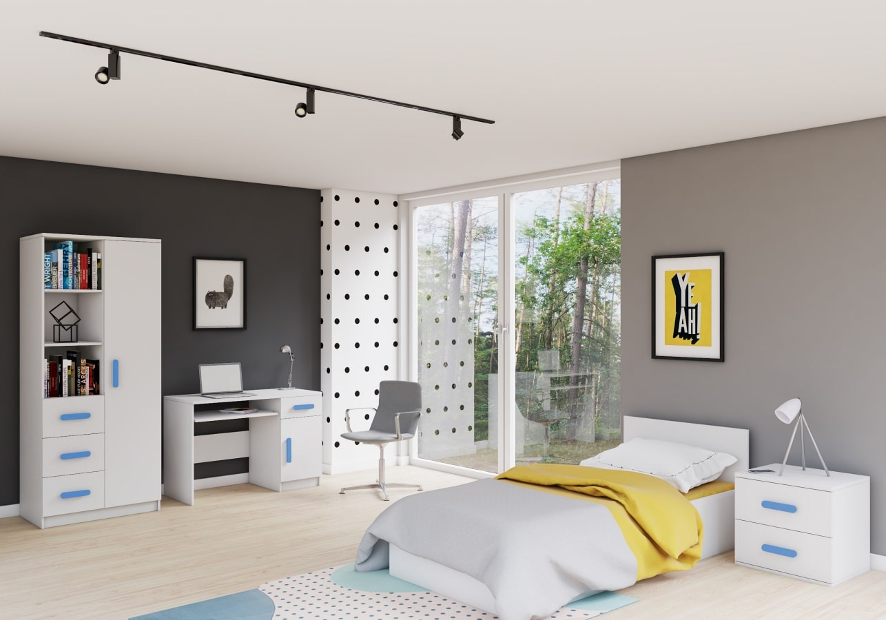 Zestawy mebli młodzieżowych pomogą stworzyć przestrzeń, która będzie bardziej funkcjonalna. Kolekcja NODI WHITE to idealny wybór, jeśli zamierzasz wyposażyć pokój dziecka w nowe, nowoczesne meble, które będą pasować do większego i mniejszego pokoju! Jasne, żywe akcenty wprowadzą do pomieszczenia radosny nastrój. Wiele wybarwień uchwytów do wyboru pozwoli wybrać młodemu człowiekowi swoje ulubione zestawienie. Szeroki uśmiech na jego twarzy to chwila, która najbardziej cieszy rodziców. Proste, jasne bryły oraz ciekawa, żywa kolorystyka to cechy przyciągające wzrok rodziców i nastolatków. Nadają przestrzeni oryginalnego designu, którego każdy może pozazdrościć.