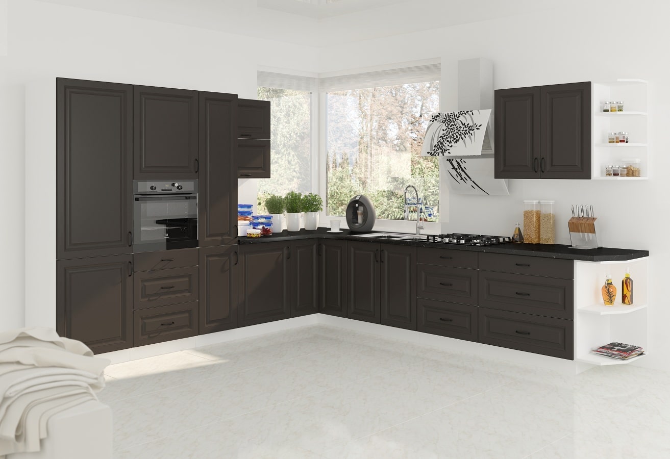 Dzięki uniwersalnemu ustawieniu, meble kuchenne dopasują się do wnętrza każdej kuchni. Cztery kolory frontów oraz korpusy w dwóch kolorach wykończone w dębowym dekorze lub klasycznej bieli, nadają meblom kuchennym szczególnego charakteru. Czarne, metalowe uchwyty podkreślają elegancję szafek kuchennych. Zestaw mebli do kuchni Madryt jest utworzony z szafek kuchennych modułowych. Dzięki modułowej budowie, szafki kuchenne z zestawu można ustawić w dowolny sposób, dopasowując układ do własnych potrzeb. Meble kuchenne modułowe Madryt to nieograniczona ilość pomysłów na aranżację. W ofercie znajdziesz szafki kuchenne stojące oraz szafki kuchenne wiszące, dzięki czemu będziesz mógł umeblować kuchnię według własnego pomysłu.
