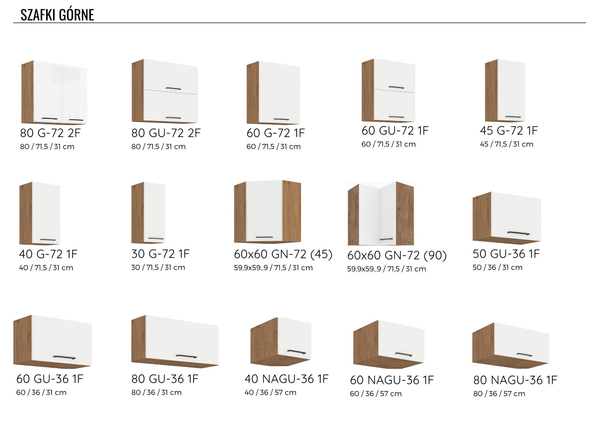 Zestaw mebli do kuchni Marvin WHHG jest utworzony z szafek kuchennych modułowych. Dzięki modułowej budowie, szafki kuchenne z zestawu można ustawić w dowolny sposób, dopasowując układ do własnych potrzeb. Meble kuchenne modułowe Marvin WHHG to nieograniczona ilość pomysłów na aranżację. W ofercie znajdziesz szafki kuchenne stojące oraz szafki kuchenne wiszące, dzięki czemu będziesz mógł umeblować kuchnię według własnego pomysłu.