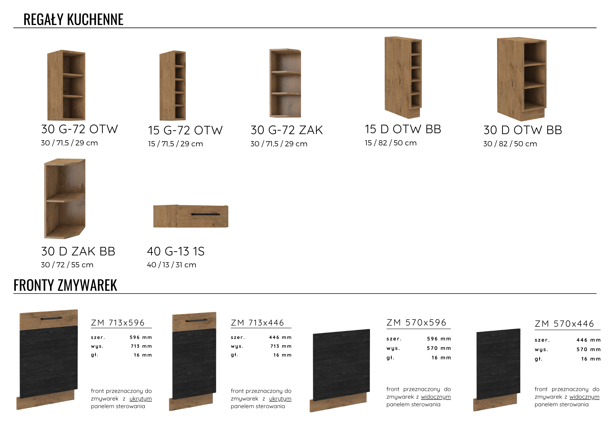 Zestaw mebli do kuchni Marvin dark jest utworzony z szafek kuchennych modułowych. Dzięki modułowej budowie, szafki kuchenne z zestawu można ustawić w dowolny sposób, dopasowując układ do własnych potrzeb. Meble kuchenne modułowe Marvin Dark to nieograniczona ilość pomysłów na aranżację. W ofercie znajdziesz szafki kuchenne stojące oraz szafki kuchenne wiszące, dzięki czemu będziesz mógł umeblować kuchnię według własnego pomysłu.
