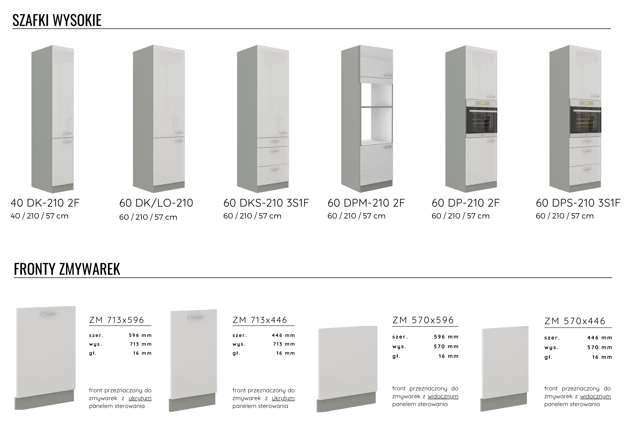 | Kolory frontów do wyboru | biały połysk BIANCA, krem połysk CARMEN, szary połysk GREY |