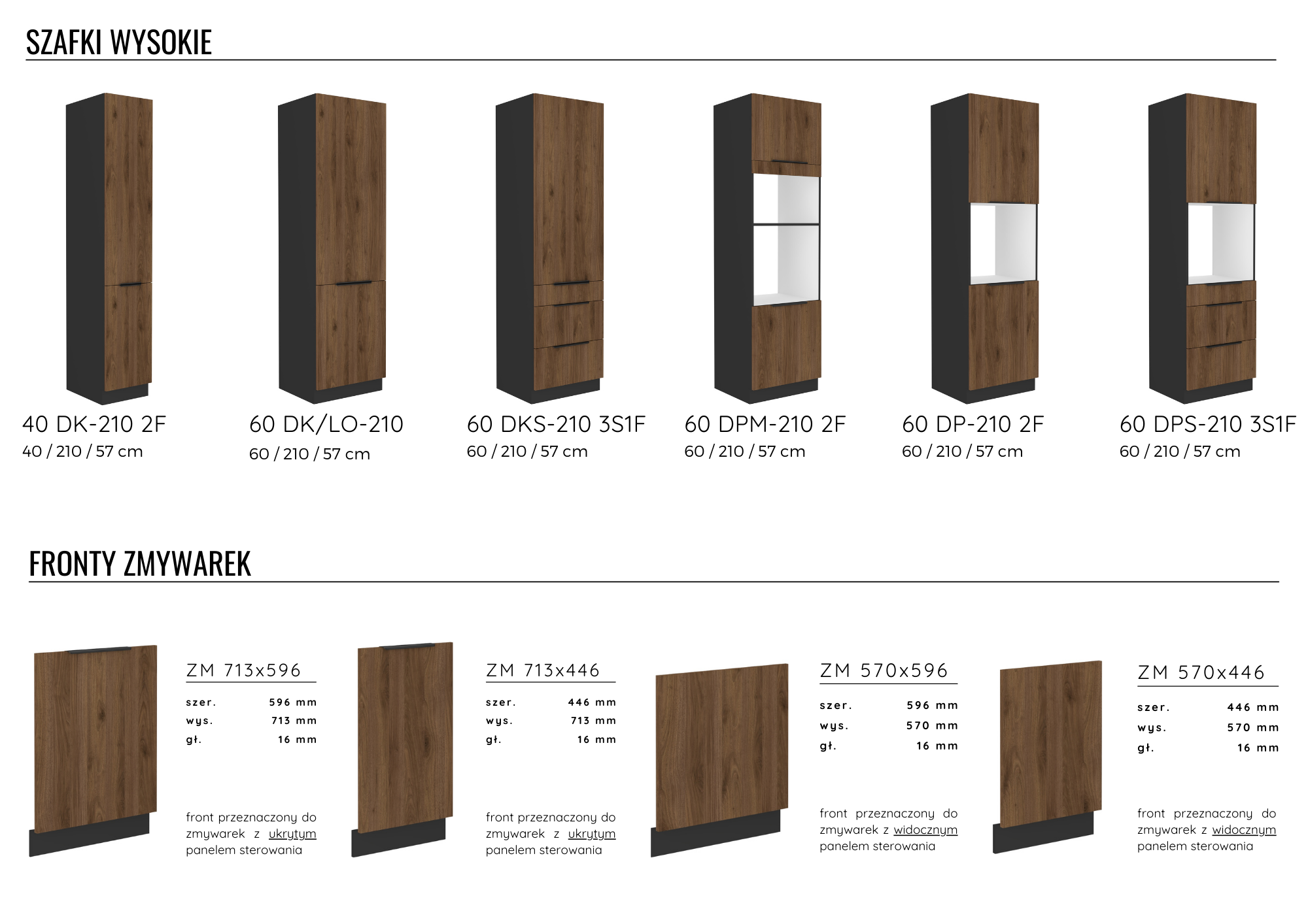 - Fronty nowoczesne gr. 16 mm wykonane z płyty laminowanej pokrytej folią matową.