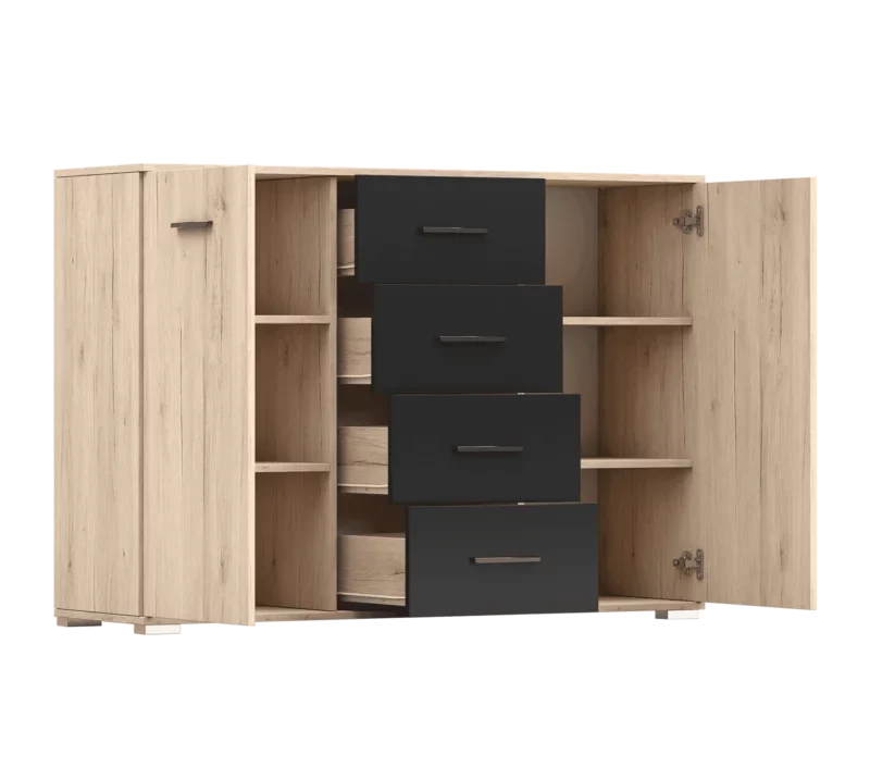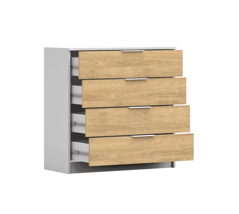Komoda NESCA Bez wątpienia Komoda Nesca to praktyczny mebel, który dzięki czterem pojemnym szufladom oferuje dużo miejsca do przechowywania. Komoda Nesca doskonale wpisuje się w różnorodne aranżacje wnętrz, co sprawia, że świetnie sprawdzi się zarówno w salonie, jak i sypialni. Dzięki temu możesz cieszyć się nie tylko wygodą, ale także estetyką, która nada wnętrzu nowoczesnego…