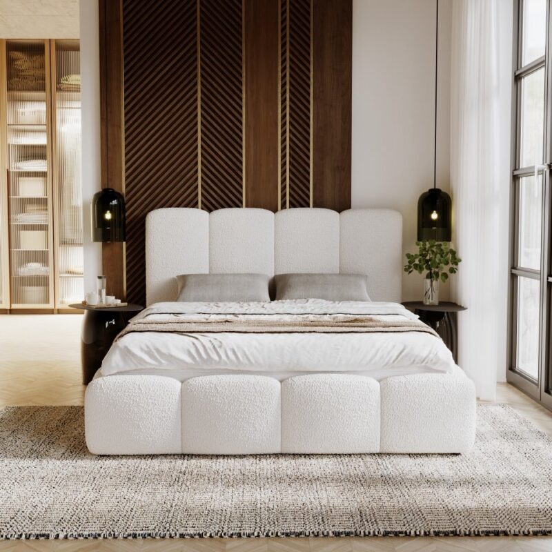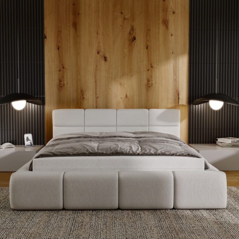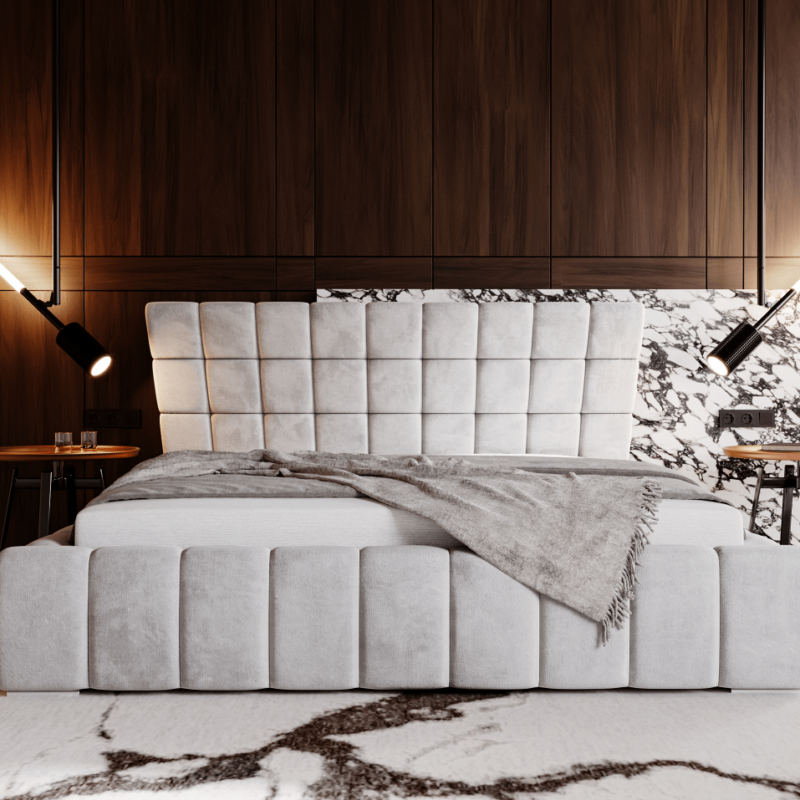 Łóżko tapicerowane VERSO Marzysz o pięknym łóżku, które doda Twojej sypialni elegancji, a Tobie zapewni regenerację po całym dniu? Łóżko tapicerowane Verso będzie idealnym rozwiązaniem! Verso to zachwycające łóżko tapicerowane ozdobione pionowymi przeszyciami, które pięknie uwypuklają elementy. Przeszycia znajdują się zarówno na wezgłowiu jak i samej ramie łóżka. Zaokrąglone kształty mebla dodają mu przytulności, od…