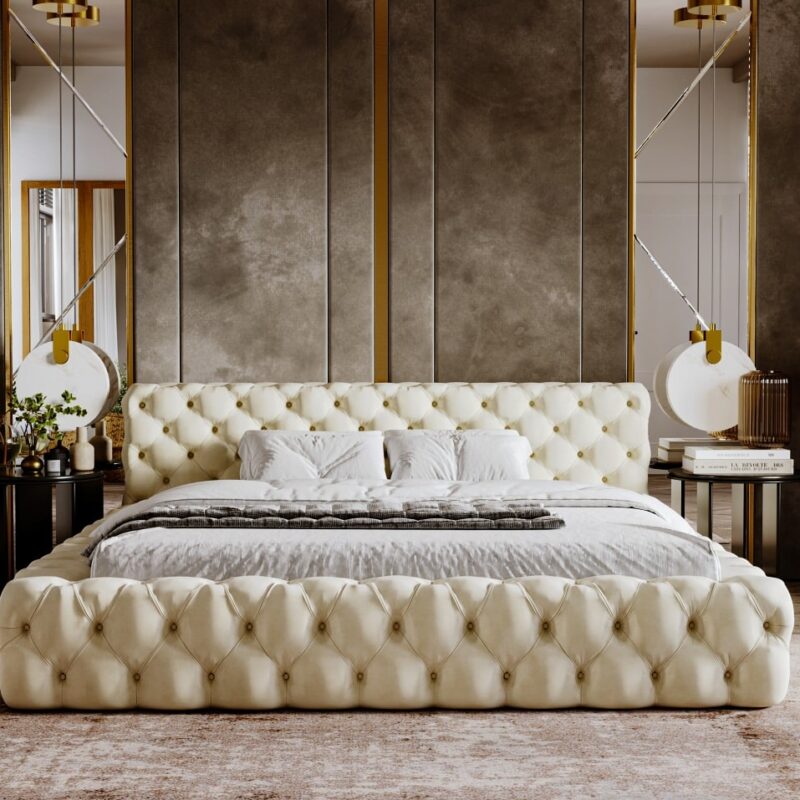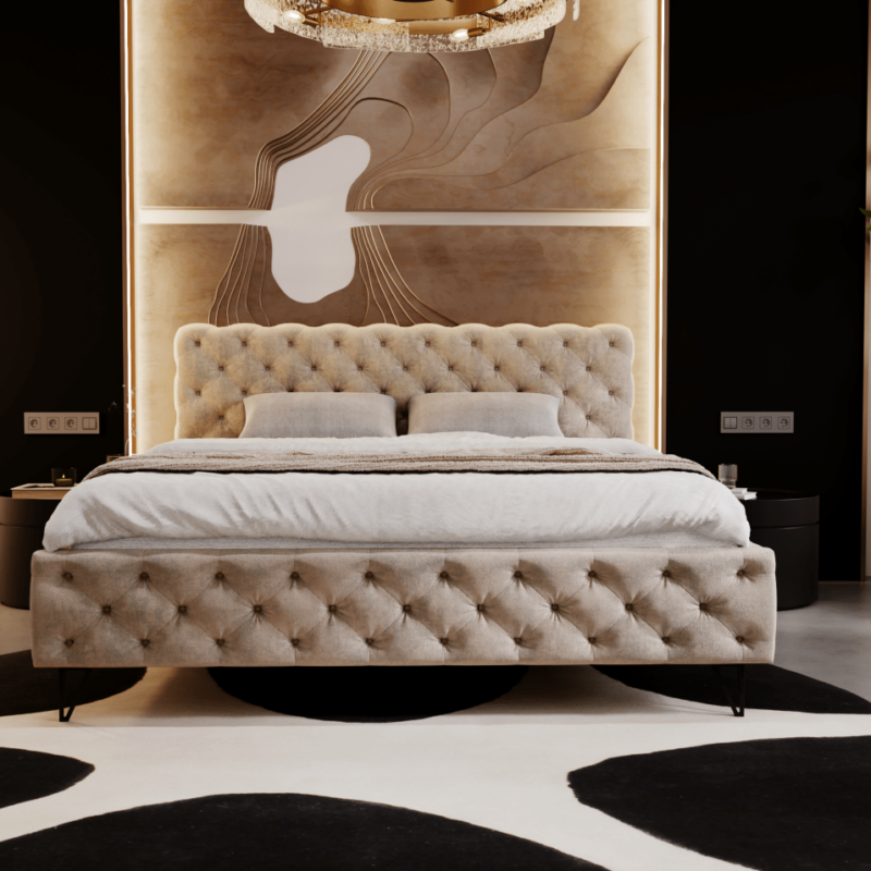 Łóżko tapicerowane PRESTON Marzy Ci się prawdziwie królewska sypialnia – postaw na nasze pełne wdzięku łóżko Preston, a Twoje wnętrze rozkwitnie pięknem! Preston to szykowna bryła o ciekawej formie, która z pewnością przyciągnie każdy wzrok. Oryginalny kształt oraz wyraziste pikowane wezgłowie dodadzą wnętrzu przytulności i elegancji – dzięki temu łóżko świetnie sprawdzi się w aranżacjach…