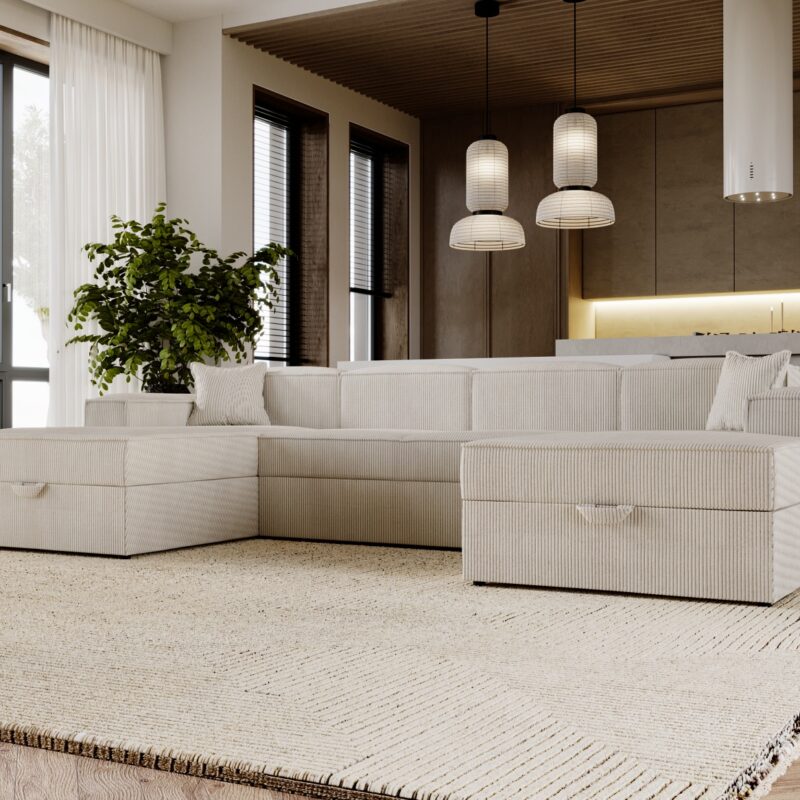 Kanapa z funkcją spania KENZO sztruks Są meble, które przyciągają wzrok, ale tylko niektóre z nich zostają w pamięci. Taką właśnie kanapą jest kanapa Kenzo sztruks – elegancka i funkcjonalna. Została zaprojektowana z myślą o tych, którzy cenią nowoczesny design i wygodę. Co więcej, stworzono ją w taki sposób, by łączyła komfort, funkcjonalność i przytulną…