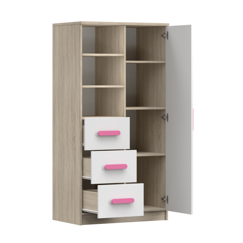 Regał z szufladą NORDI Ciekawe meble do pokoju młodzieżowego? Ponadczasowa stylistyka, modernistyczne rozwiązania, ale również schludny wygląd? Zestaw mebli dziecięcych NORDI to wyśmienity wybór, jeśli stawiasz na schludną biel i ewentualne dodatki w postaci dekoru drewna dąb sonoma. Charakteryzują się prostą, geometryczną formą i funkcjonalnością. Meble z kolekcji FLARON charakteryzują dekoracyjne uchwyty sznurkowe w stylu marynarskim. Korpus i fronty wykonane…